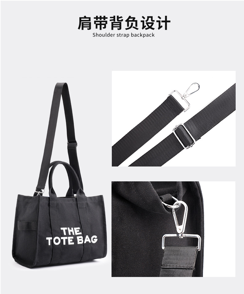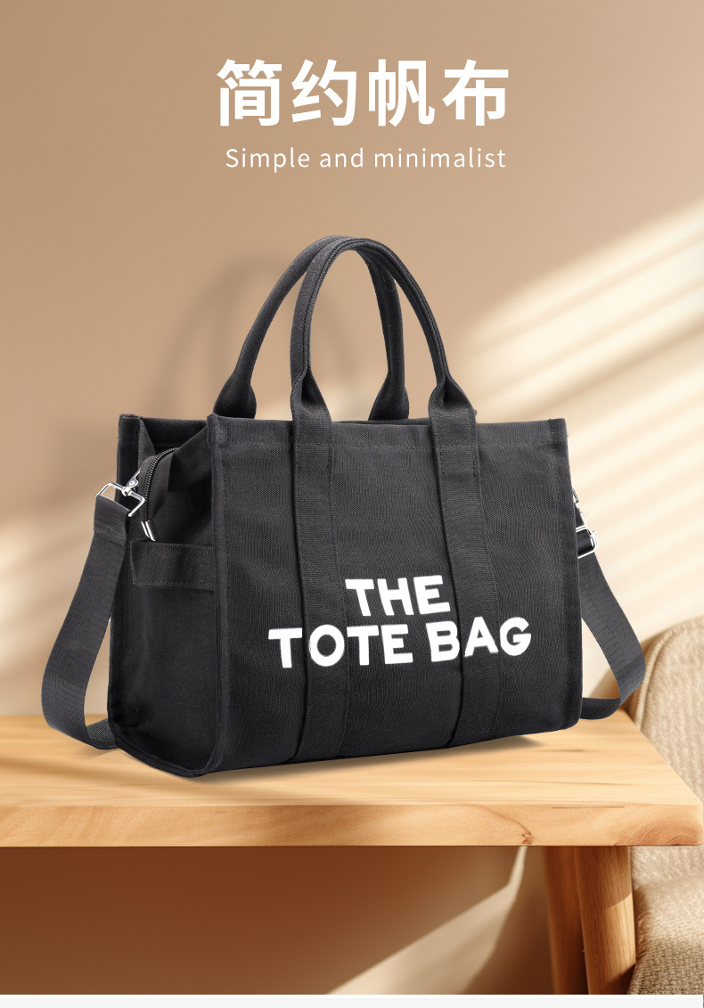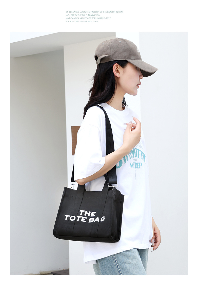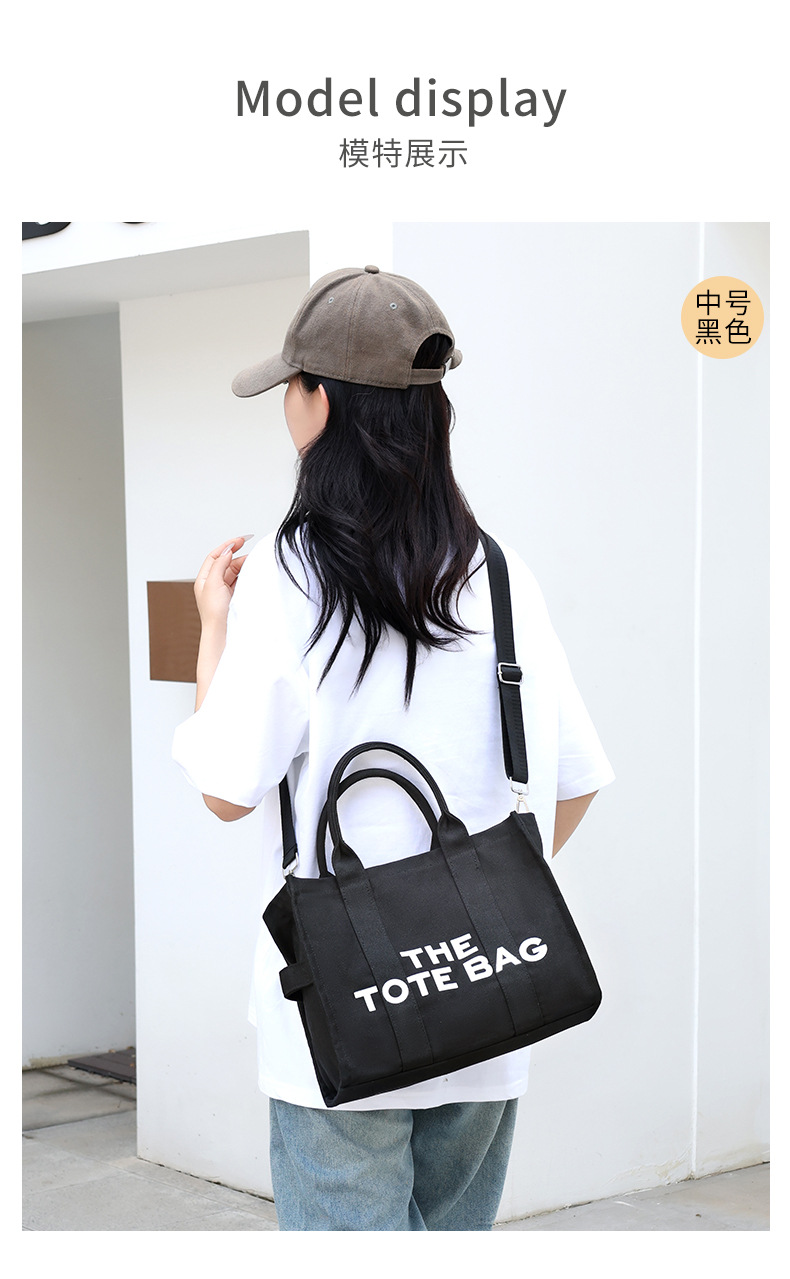 2024 국경 여성 가방 간단한 크로스 바디 가방 캐주얼 토트 백 편지 인쇄 캔버스 가방 대용량 어깨 가방