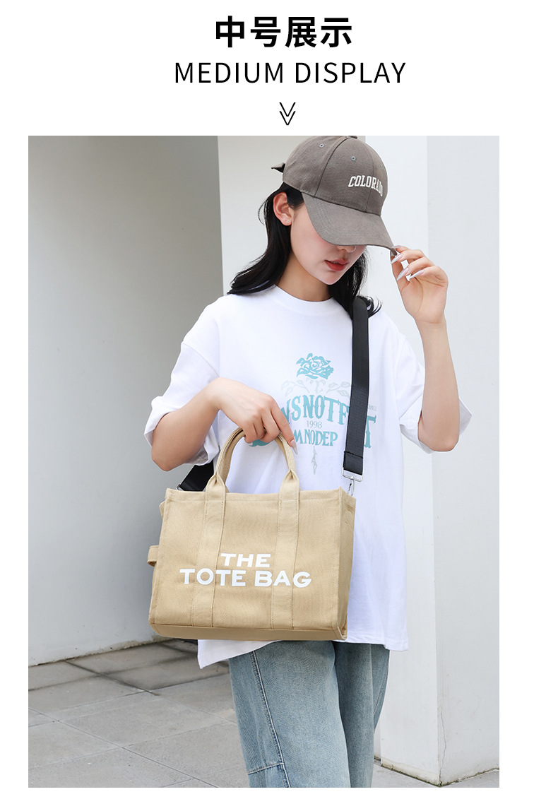 2024 국경 여성 가방 간단한 크로스 바디 가방 캐주얼 토트 백 편지 인쇄 캔버스 가방 대용량 어깨 가방스토어 가기