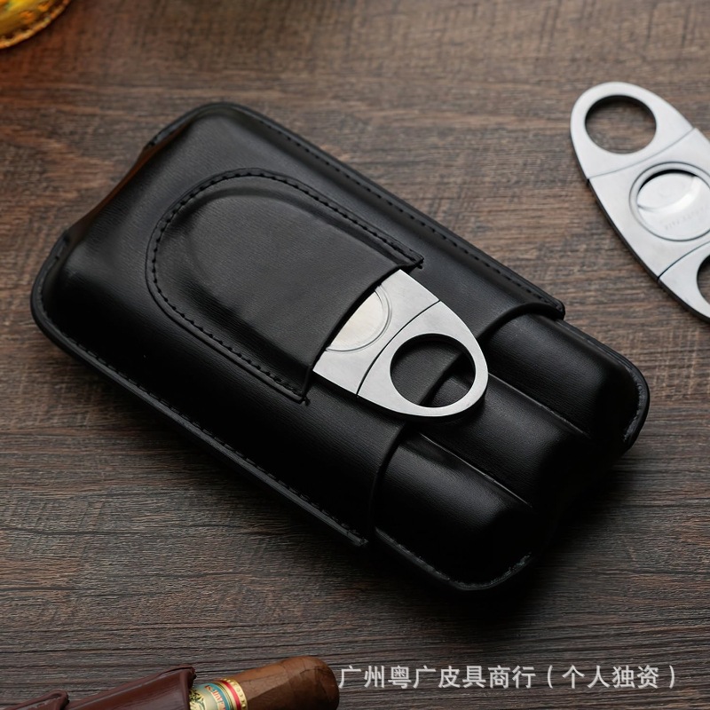 유럽과 미국의 새로운 국경 3 종 시가 상자 정품 가죽 복고풍 휴대용 여행 시가 세트 남성용 시가 보습기스토어 가기
