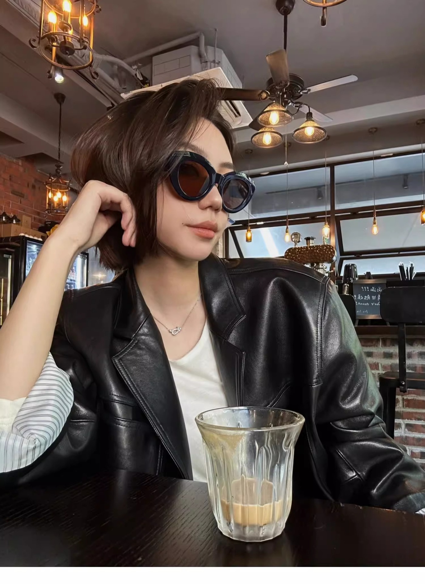 가죽 서쪽 야채 탄화 정품 가죽 세트 가죽 자켓 여성 골동품 검은 양가죽 자켓 봄과 가을 중간 길이스토어 가기