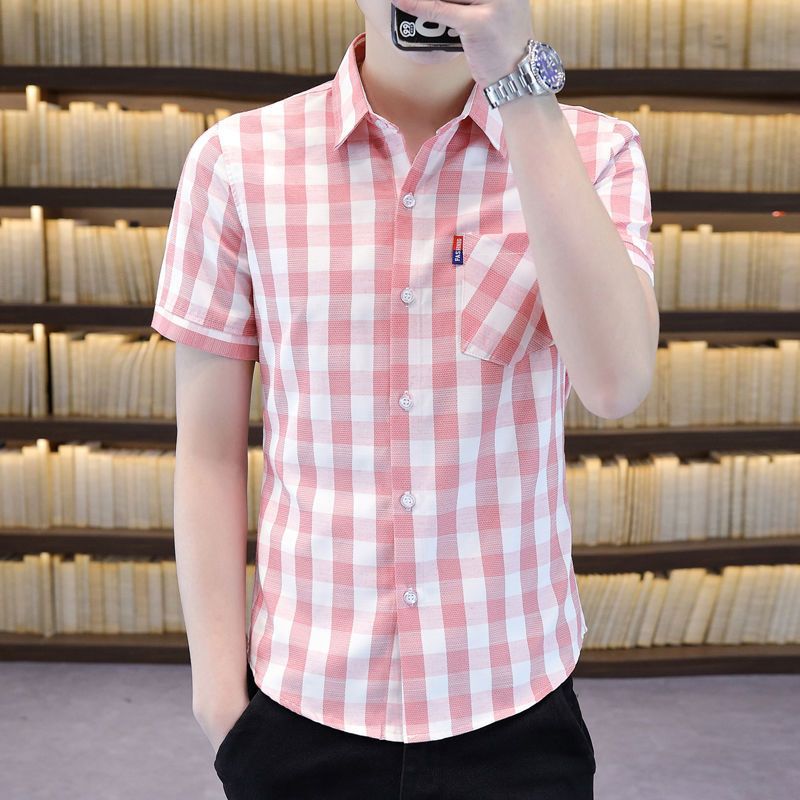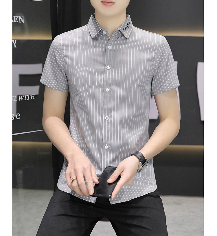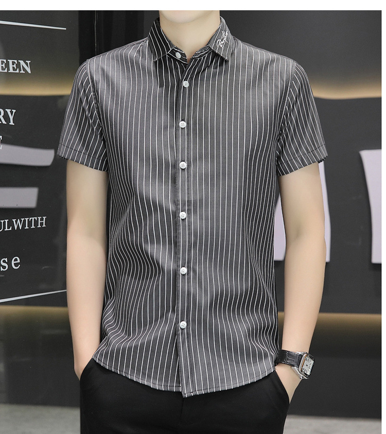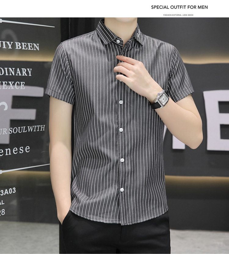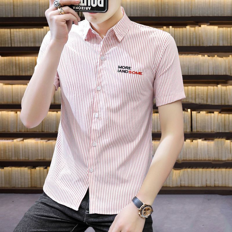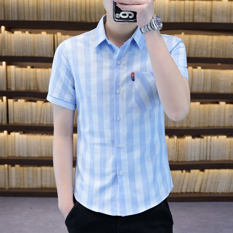 여름 남자 반팔 셔츠 유행 잘 생긴 얇은 반소매 캐주얼 줄무늬 청소년 사업 셔츠 남자 원피스 셔츠스토어 가기