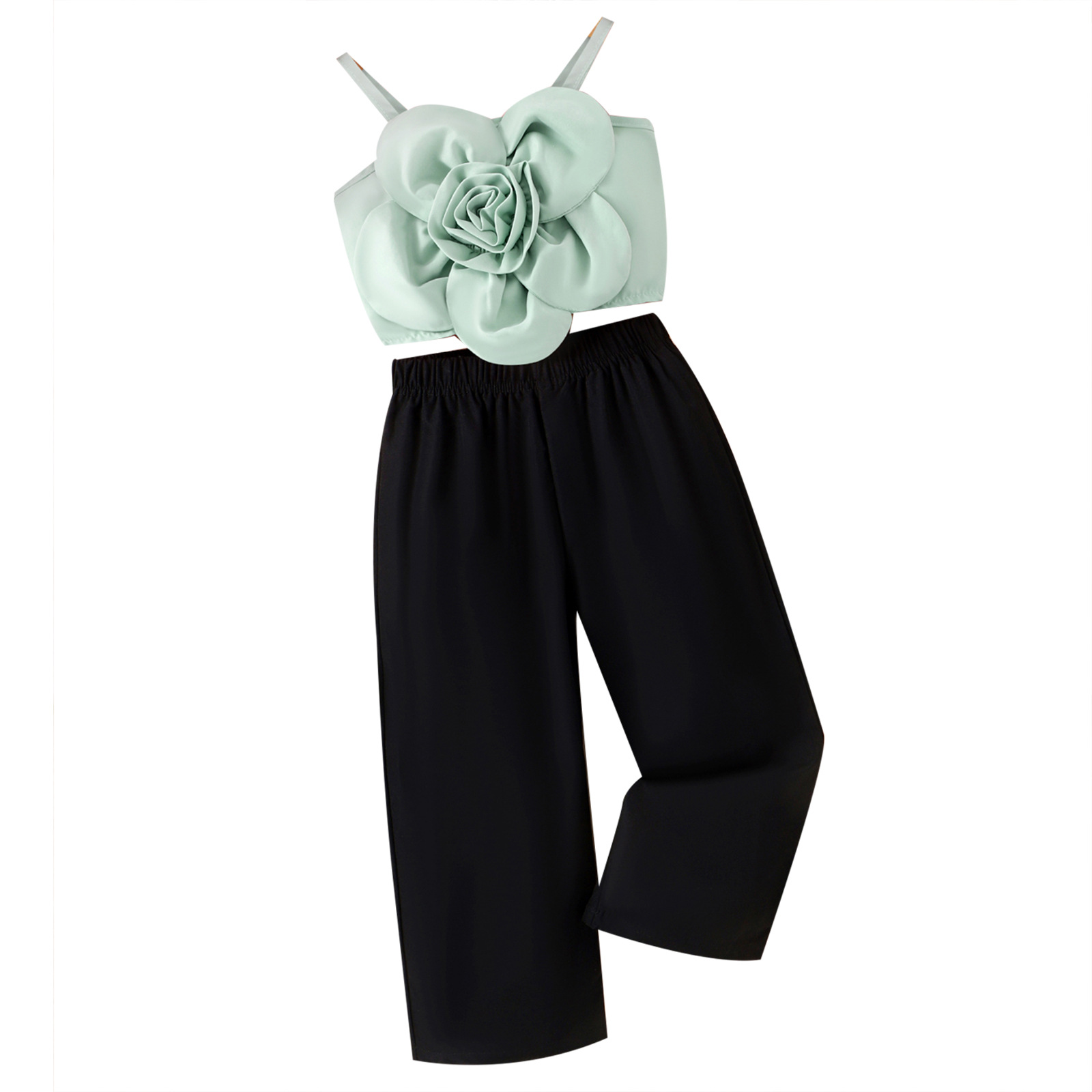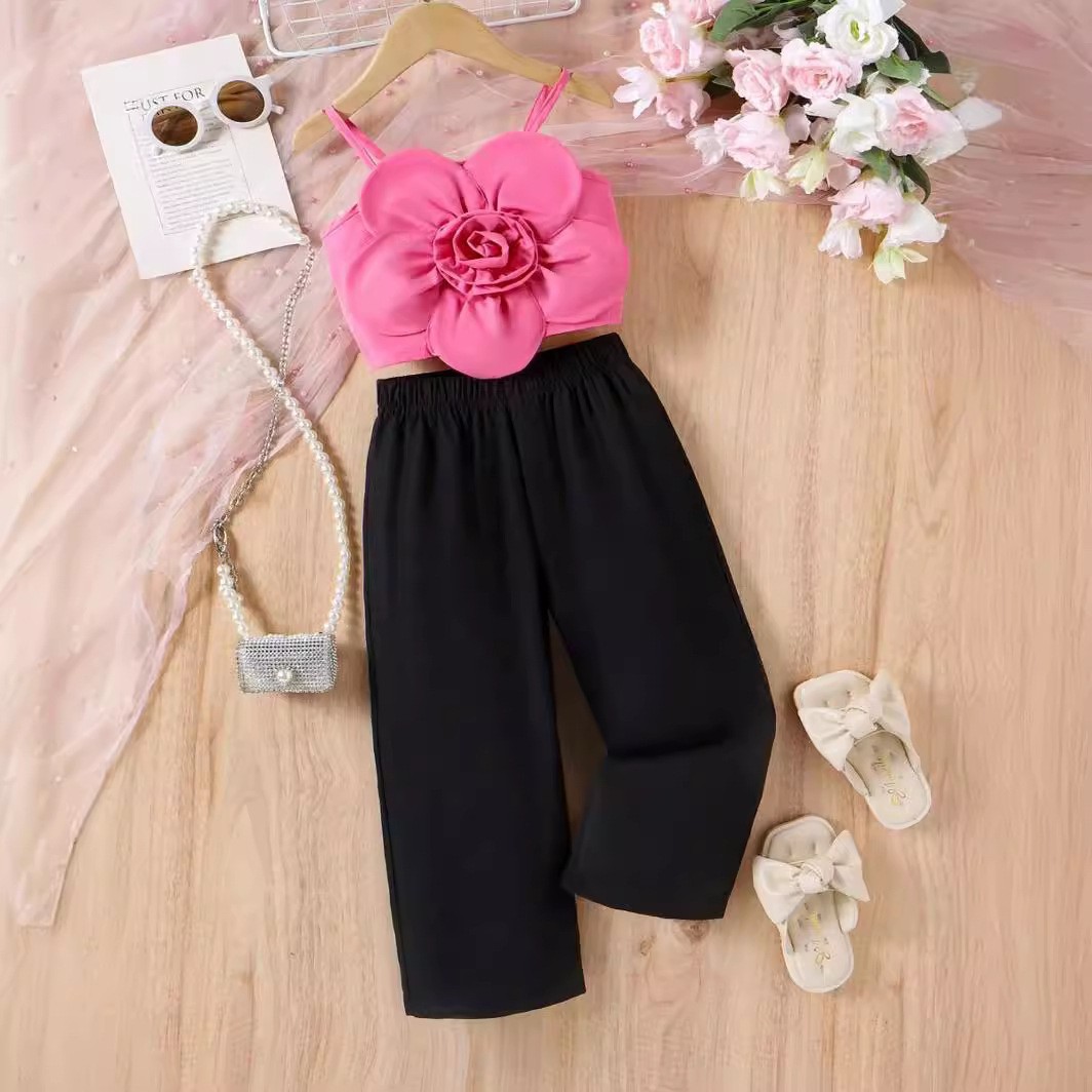 어린이 착용 국경 유럽과 미국의 여름 외국 스타일 세트 3D 입체 꽃 슬링 탑 간단한 바지 소녀 세트