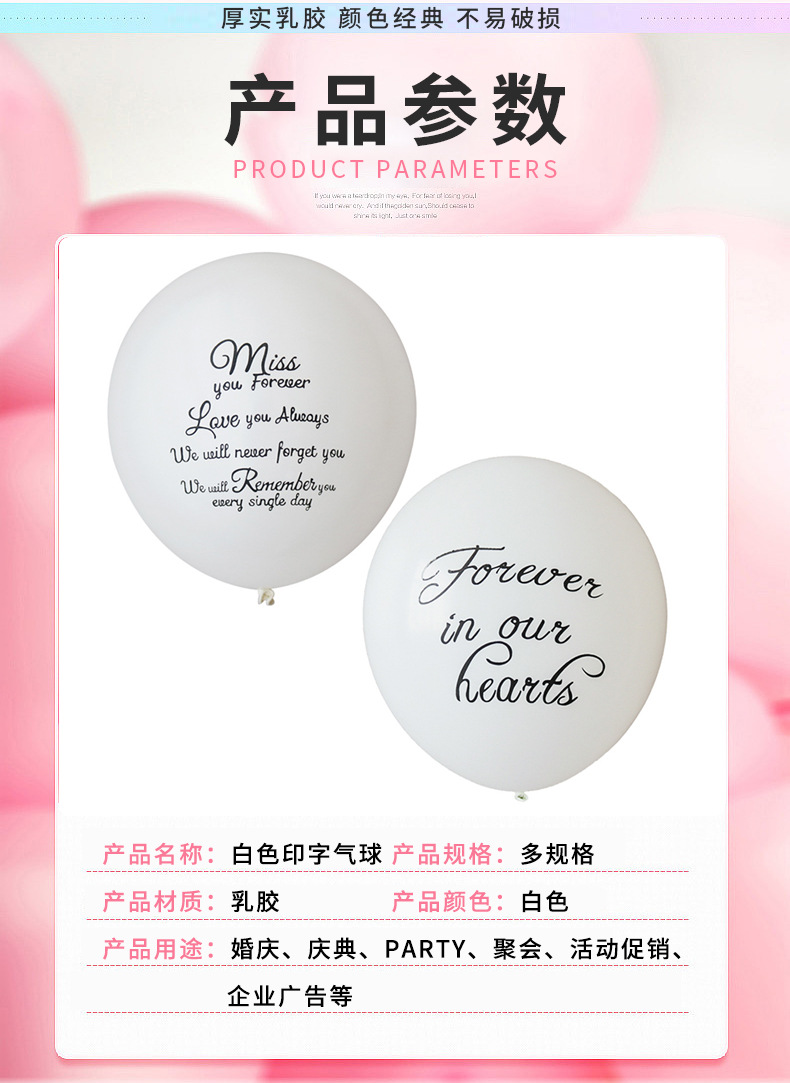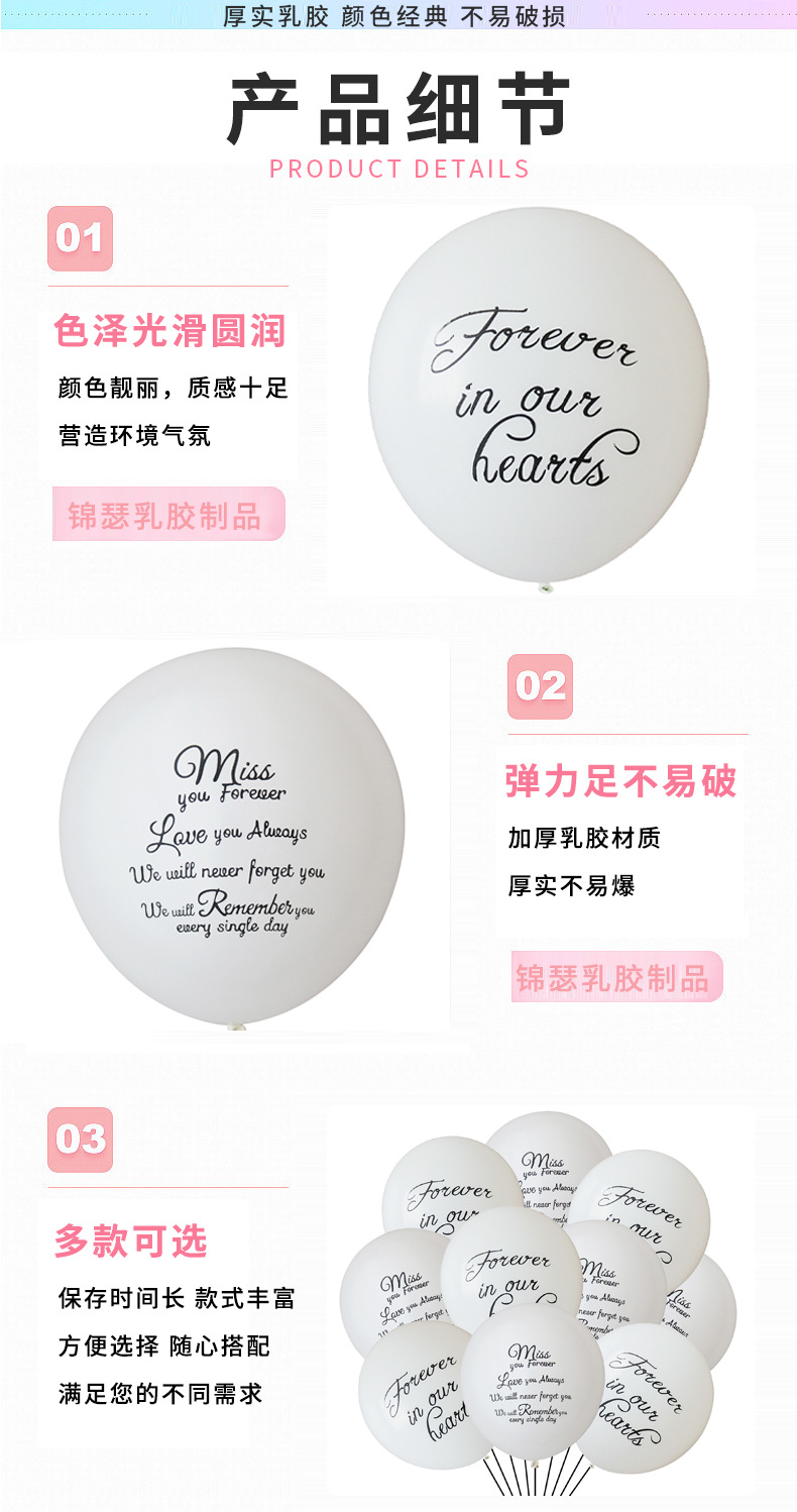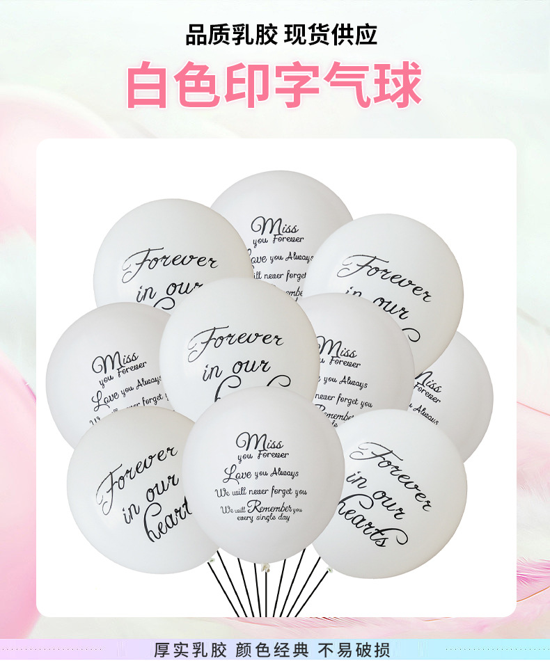 우리의 마음에 영원히 화이트 테마 풍선 장례식 기념일 테마 라텍스 풍선