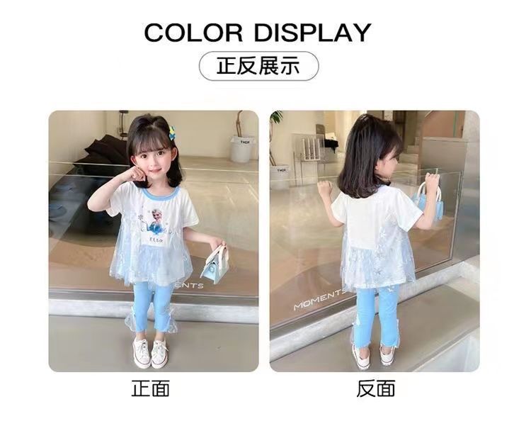 2024 새로운 여름 소녀 세트 만화 귀여운 공주 반팔 티셔츠 중소 어린이 투피스 아기 소녀 조수스토어 가기