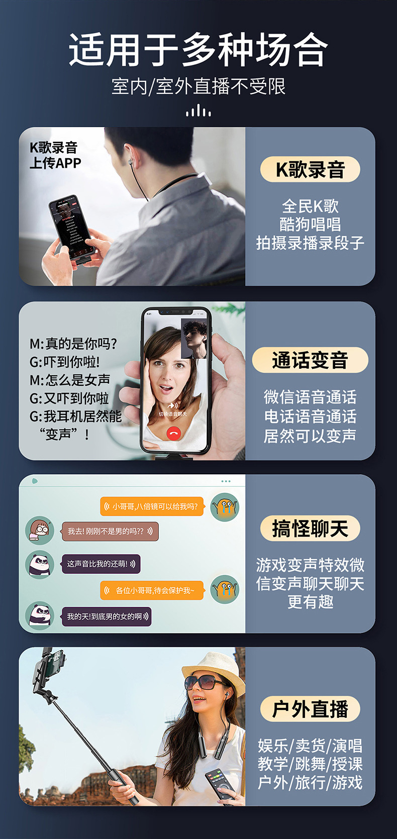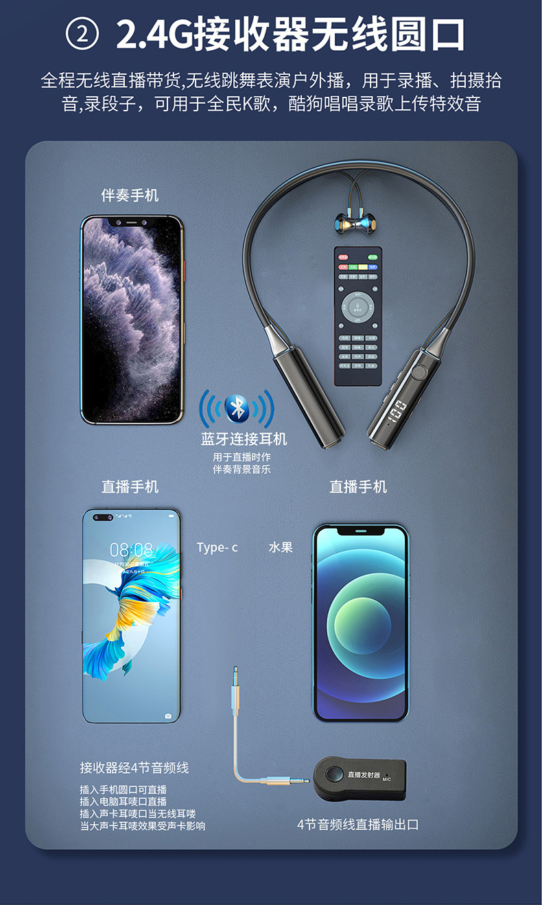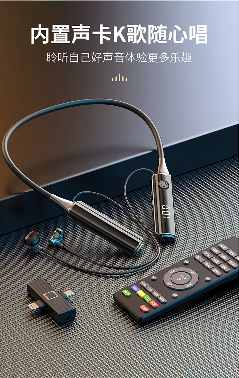 새로운 라이브 노래방 5.3 블루투스 목 헤드셋 내장 사운드 카드 무선 블루투스 라이브 헤드셋 개인 모델