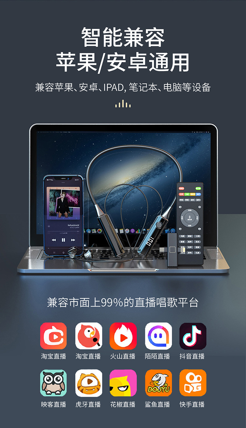 새로운 라이브 노래방 5.3 블루투스 목 헤드셋 내장 사운드 카드 무선 블루투스 라이브 헤드셋 개인 모델스토어 가기