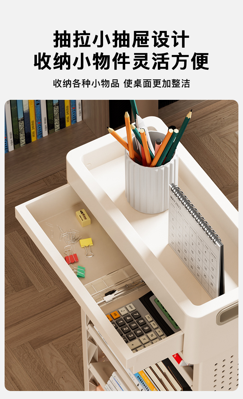 • 데스크탑 Bookshelf-5th 층-모바일-서랍과 함께, 바퀴에 움직일 수 있습니다