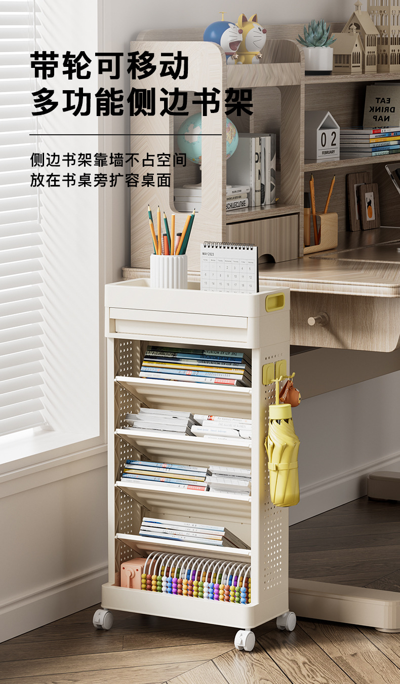 작은 책장 보관 랙 책상 바닥 바퀴 모바일 학생 기숙사 어린이 도서 그림책 보관 트롤리