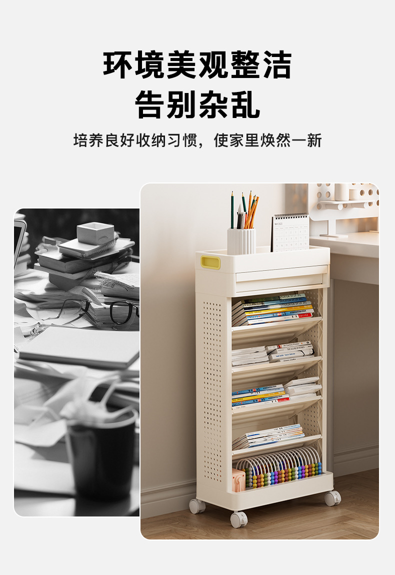 작은 책장 보관 랙 책상 바닥 바퀴 모바일 학생 기숙사 어린이 도서 그림책 보관 트롤리스토어 가기