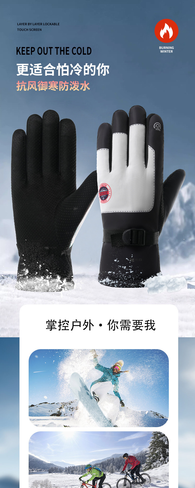 스키 장갑 커플 스타일 플러스 벨벳 두꺼워 따뜻한 겨울 방수 및 방한 사이클링 야외 스포츠 면 장갑 재고 있음