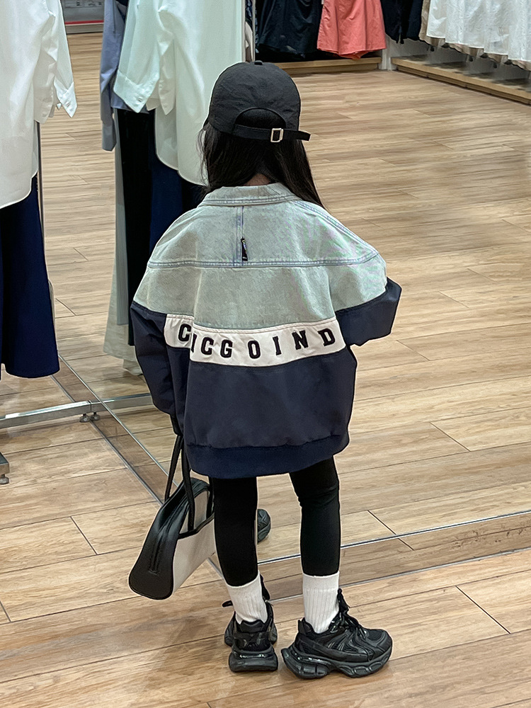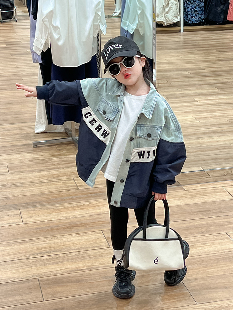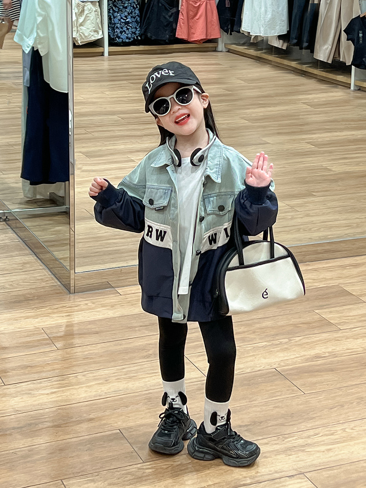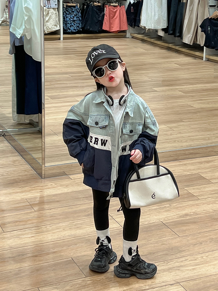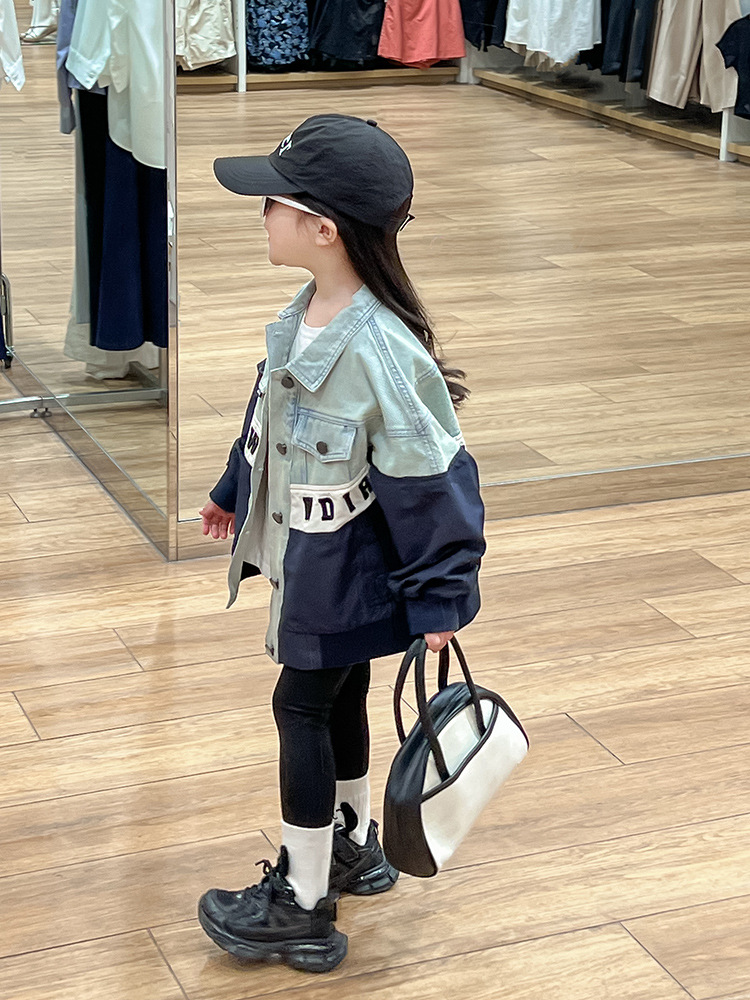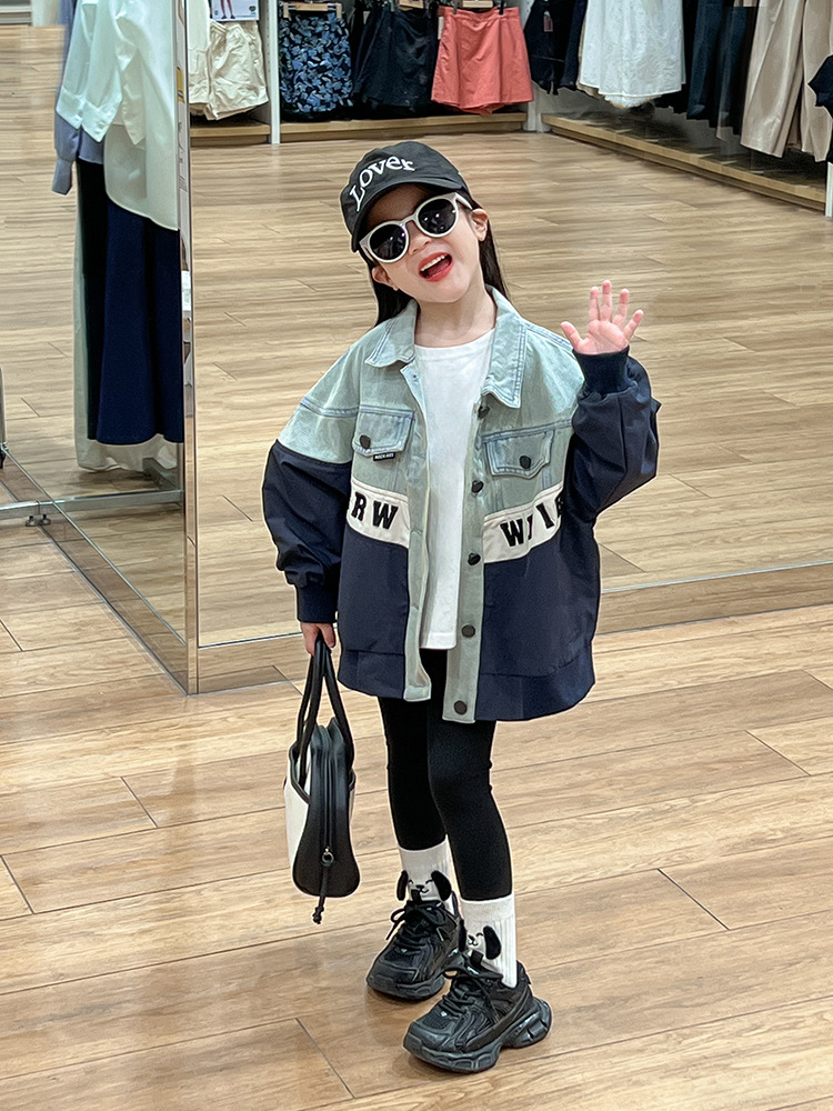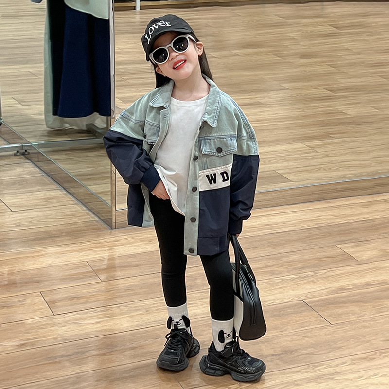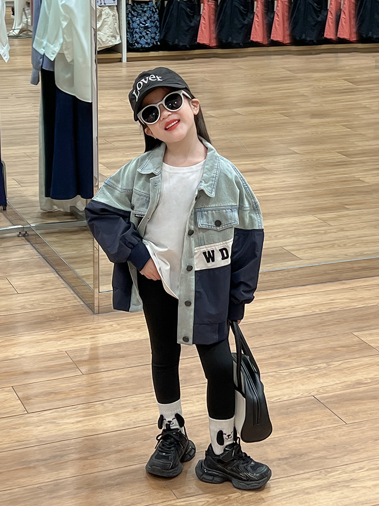 한국 스타일 재킷 2024 가을 데님 스티칭 코트 조커 바닥 셔츠 탄성 레깅스 세트 조수스토어 가기
