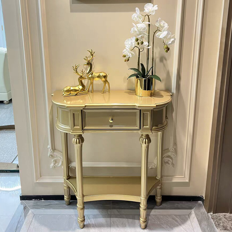 미국식 반원형 입구 테이블 입구 복도 라이트 럭셔리 입구 캐비닛 프랑스 빈티지 스토리지 랙 솔리드 우드 입구 좁은 테이블