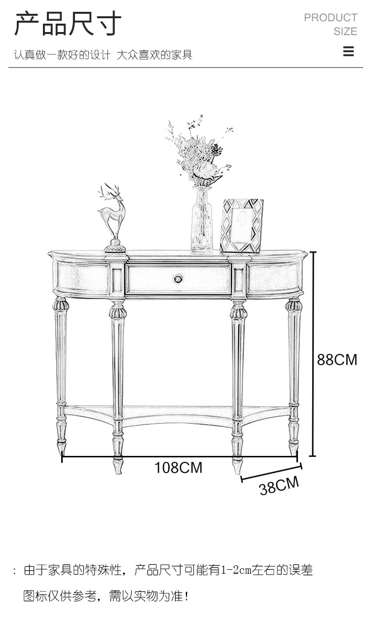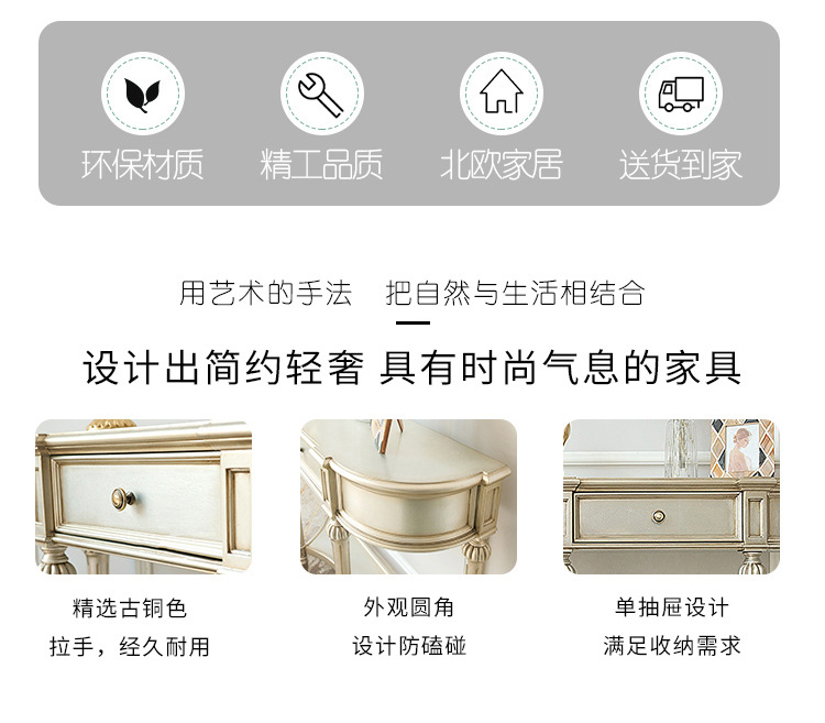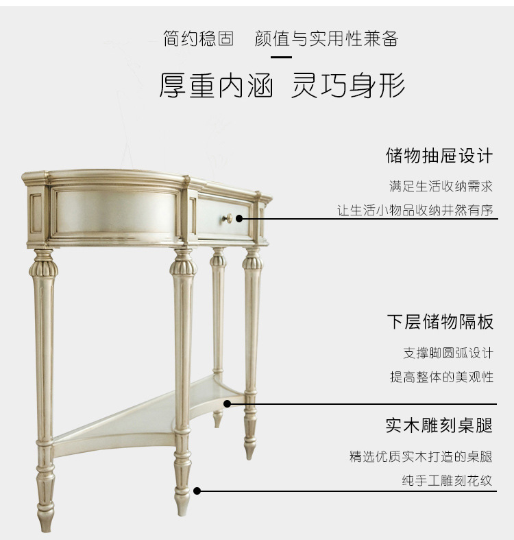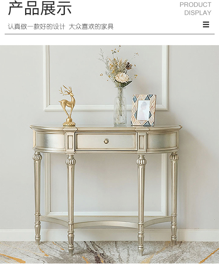 미국식 반원형 입구 테이블 입구 복도 라이트 럭셔리 입구 캐비닛 프랑스 빈티지 스토리지 랙 솔리드 우드 입구 좁은 테이블스토어 가기