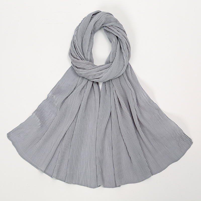 국경 간 판매 단색 주름 장식 간단한 얇은 여성 머리 스카프 중동 민족 실버 주름진 긴 스카프 도매스토어 가기