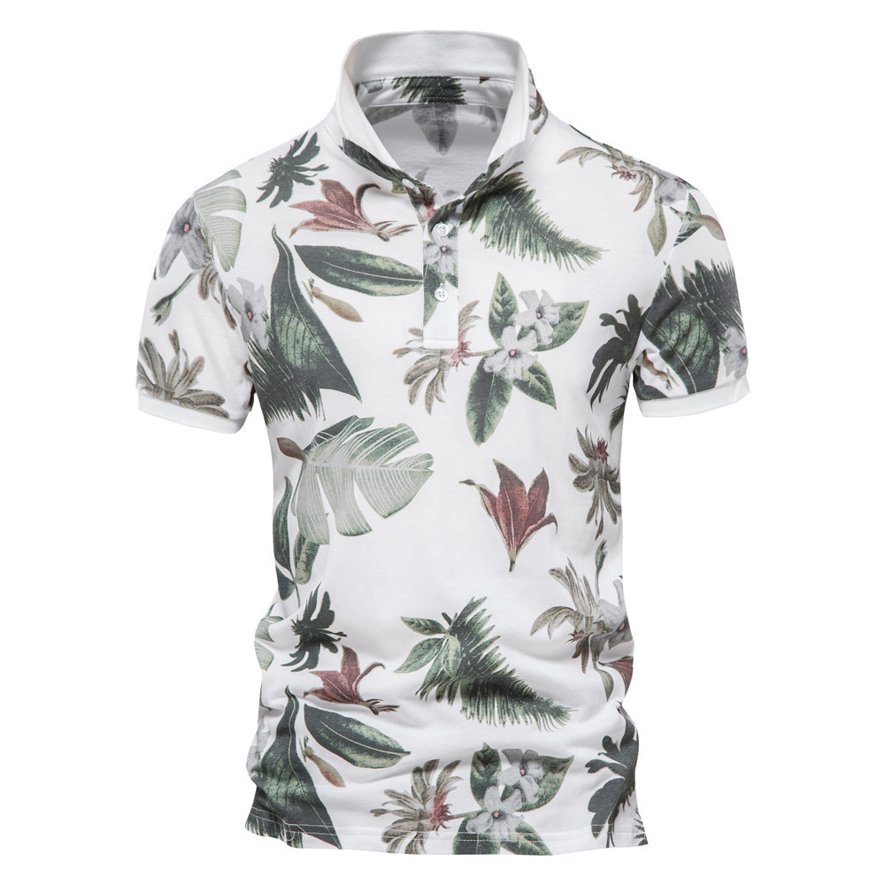 2024 년 여름 새로운 대외 무역 공급 인쇄 폴로 셔츠 재고 남성 반팔 루프 유럽 크기 티셔츠
