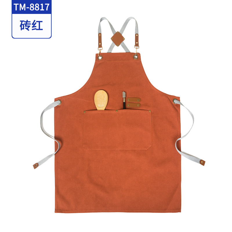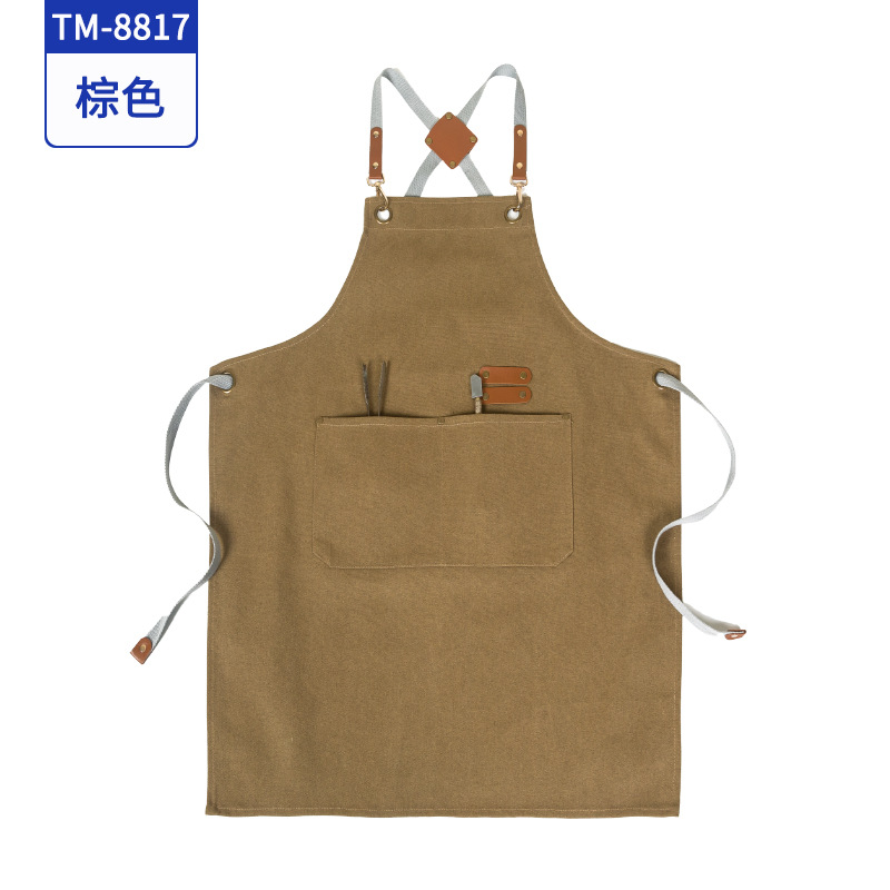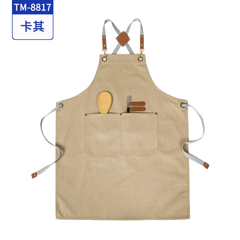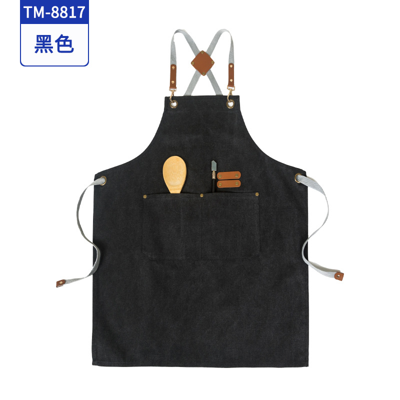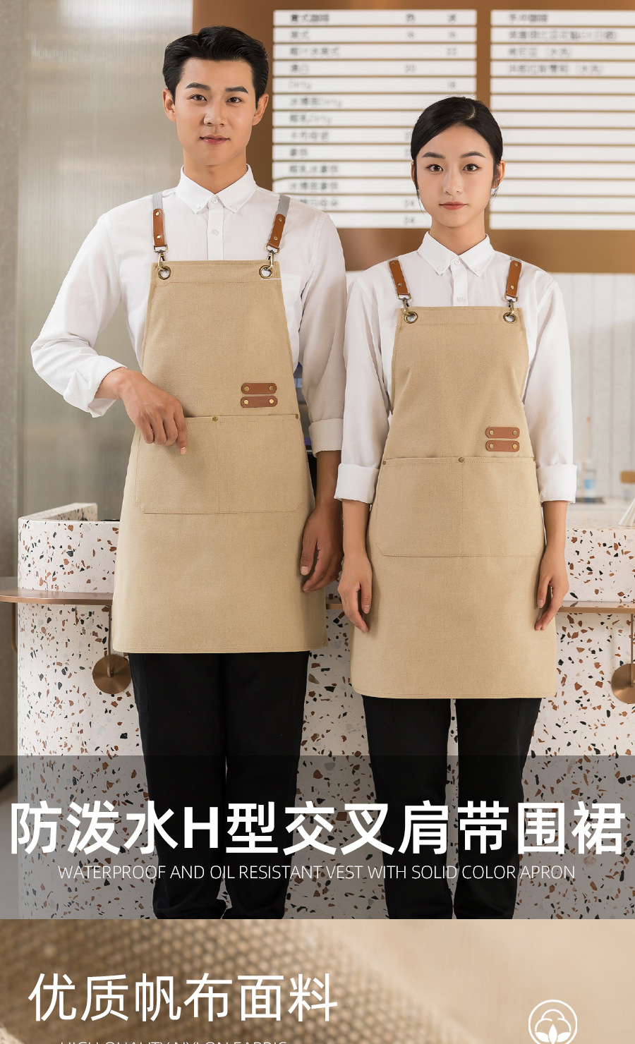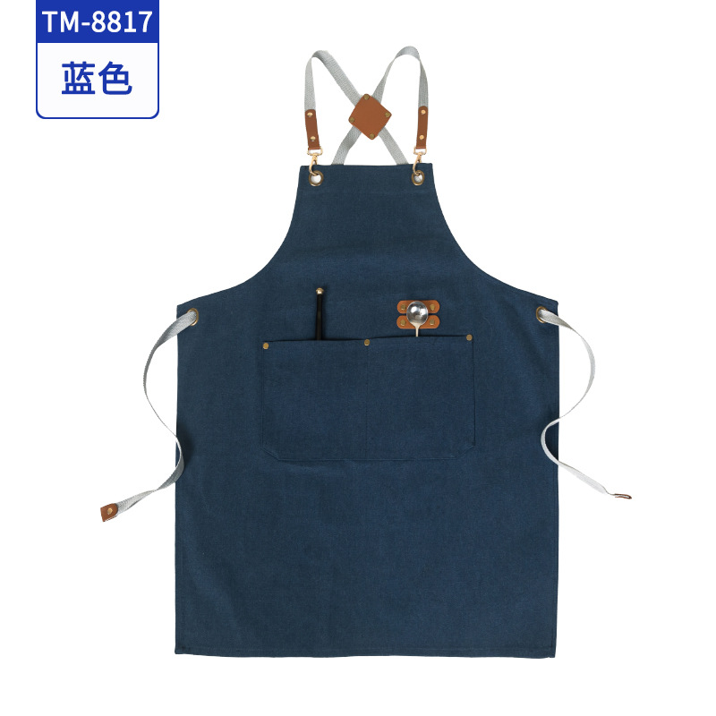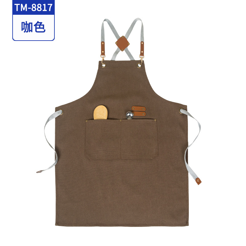 커피 숍 베이커리 밀크 티 샵 작업 의류 면화 반 튀는 H 자형 크로스 숄더 스트랩 앞치마 맞춤 로고