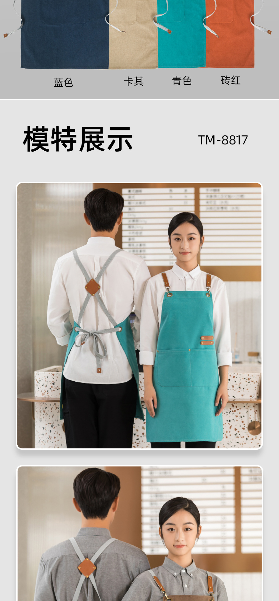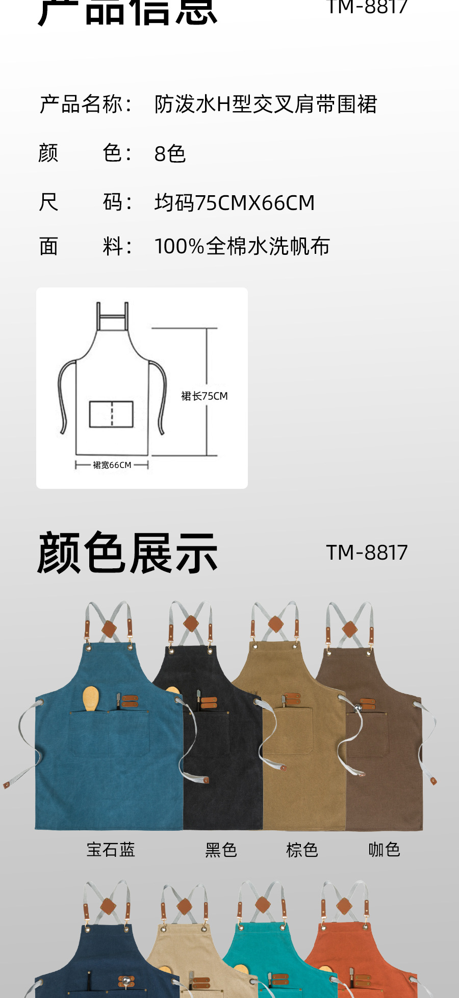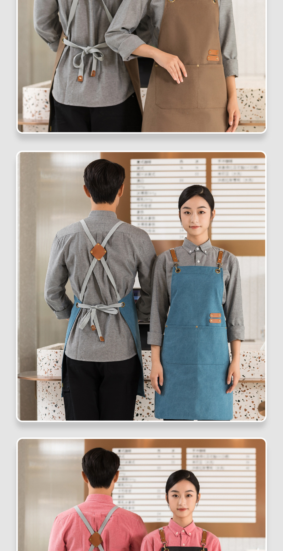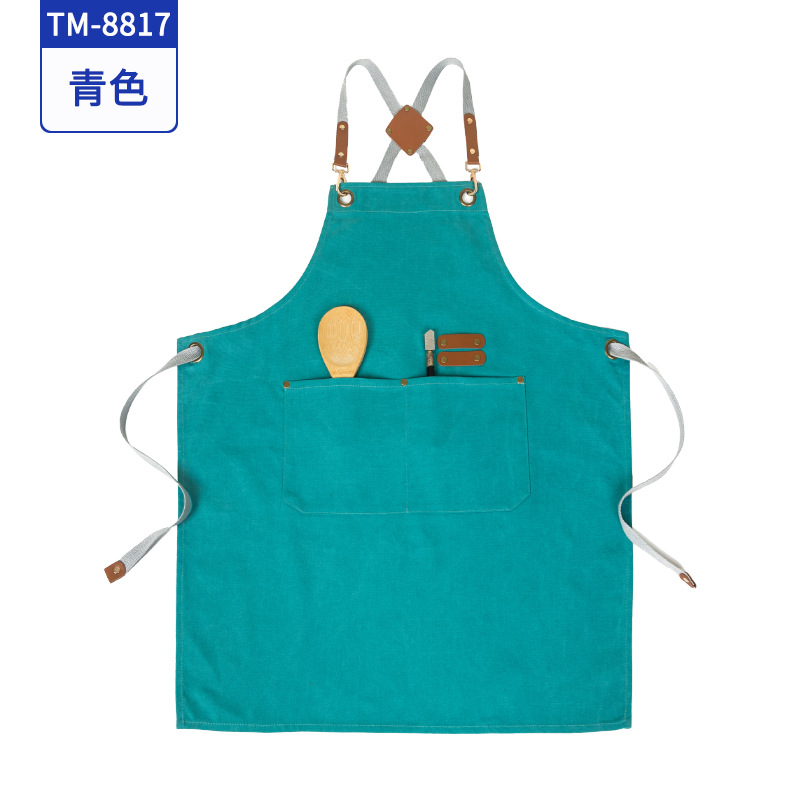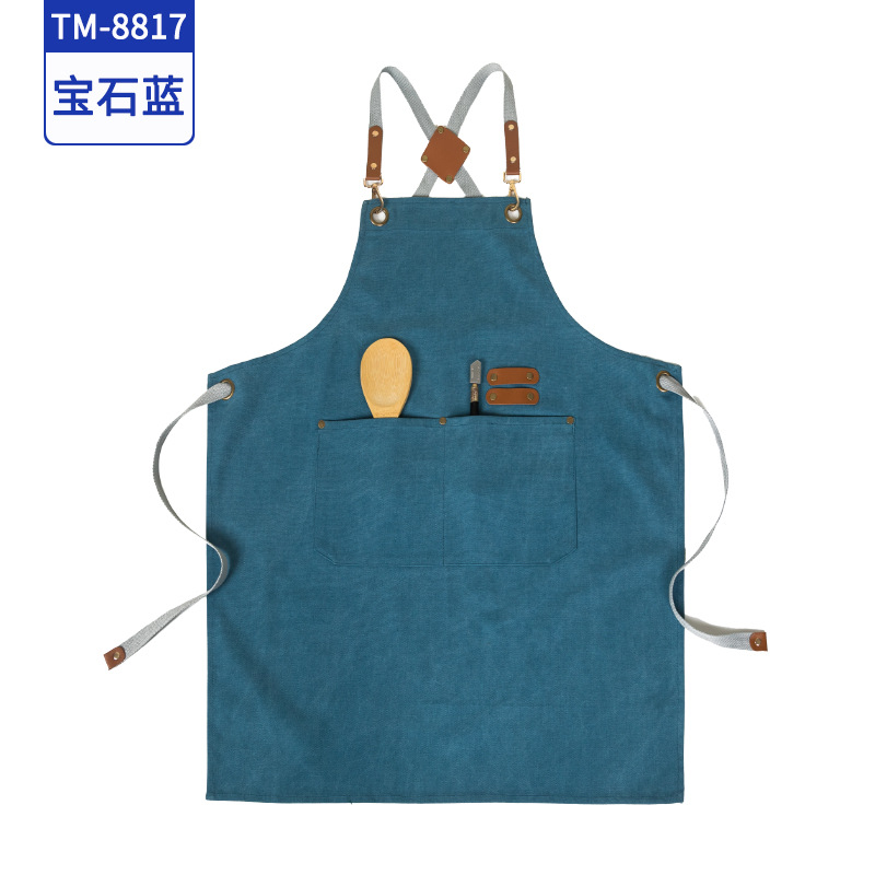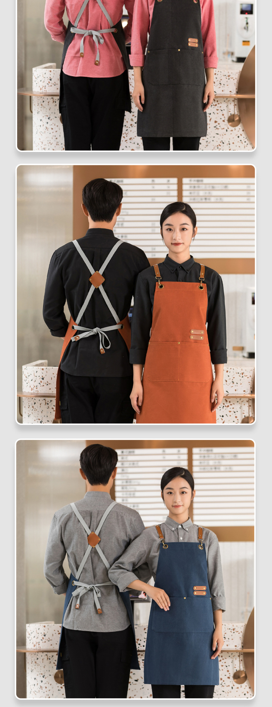 커피 숍 베이커리 밀크 티 샵 작업 의류 면화 반 튀는 H 자형 크로스 숄더 스트랩 앞치마 맞춤 로고