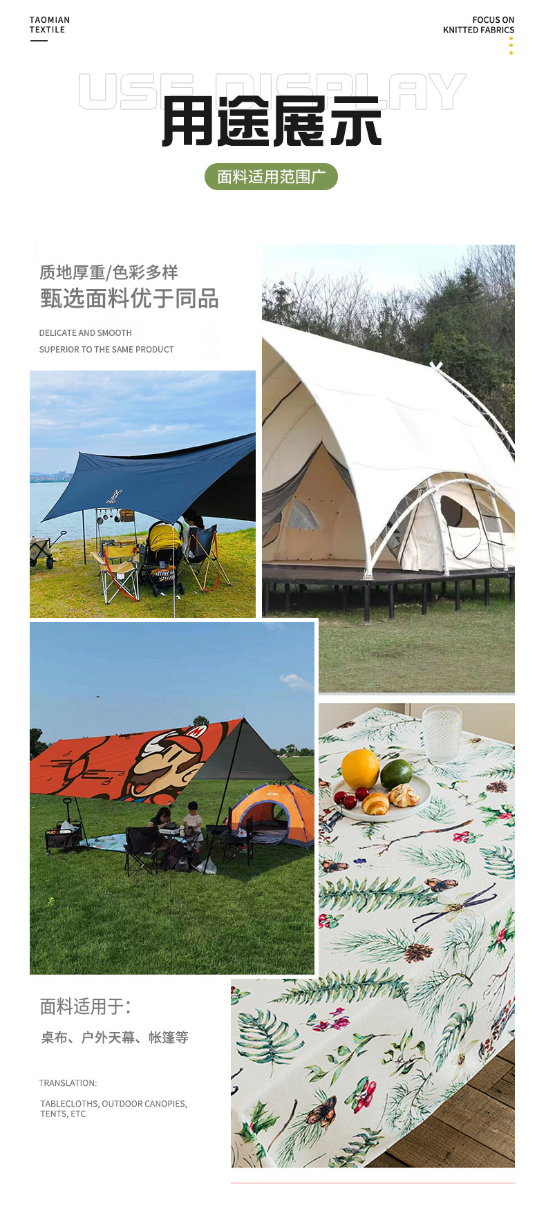 스팟 210D 옥스포드 천 디지털 인쇄 맞춤 제조 업체 만화 인쇄 식탁보 야외 캐노피 텐트 패브릭