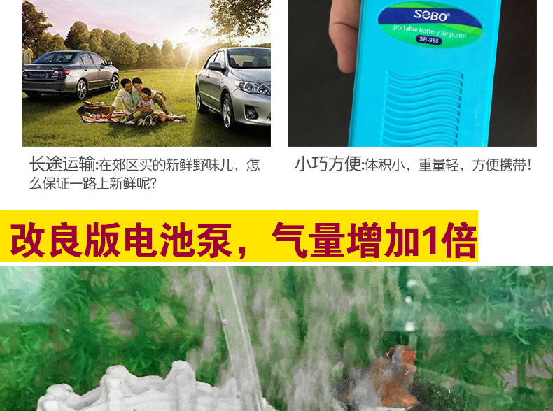 SOBO 송바오 SB-960/980 건전지 산소 펌프 야외 낚시 산소 펌프 정전 대기 비상