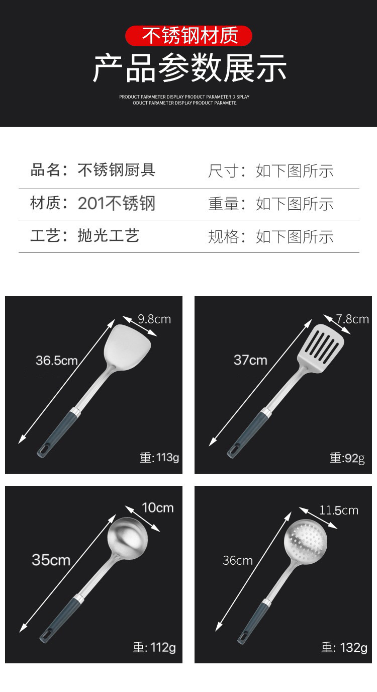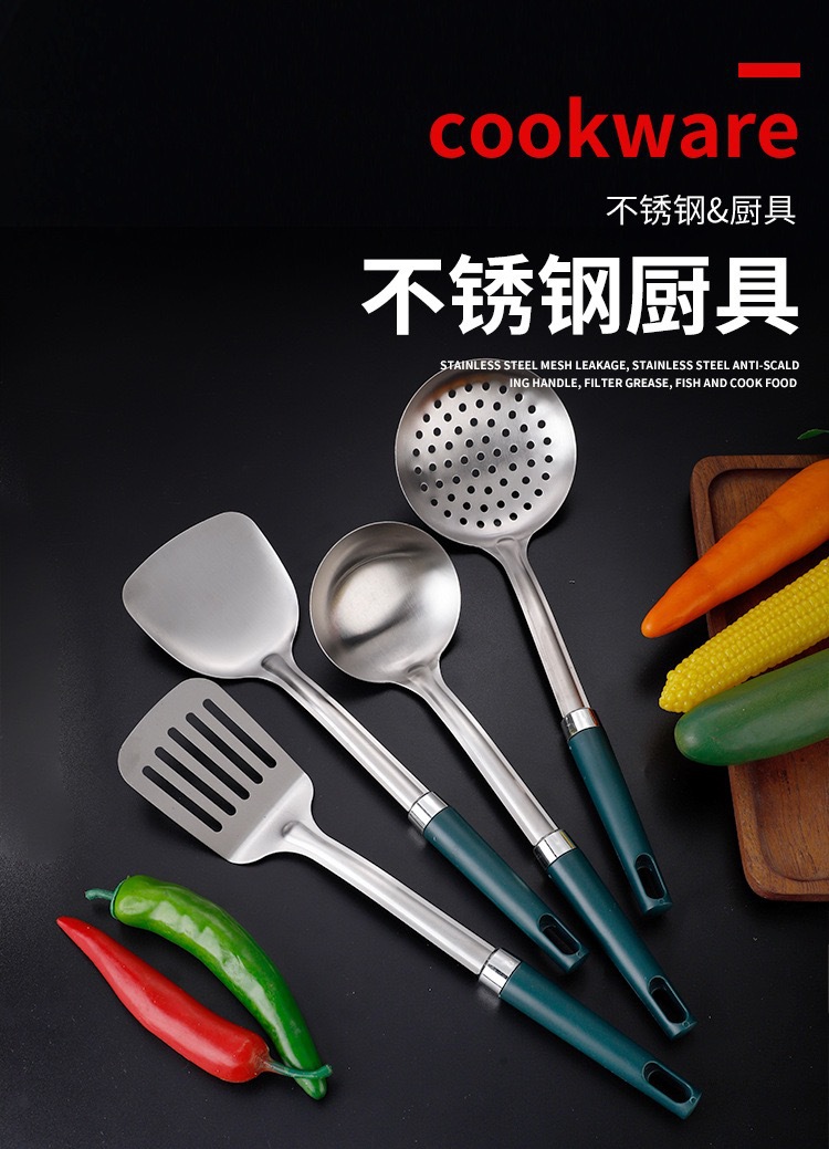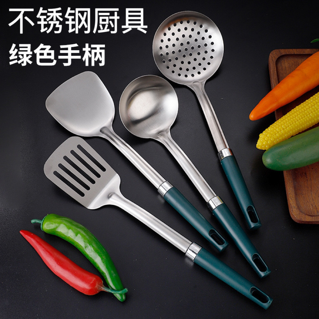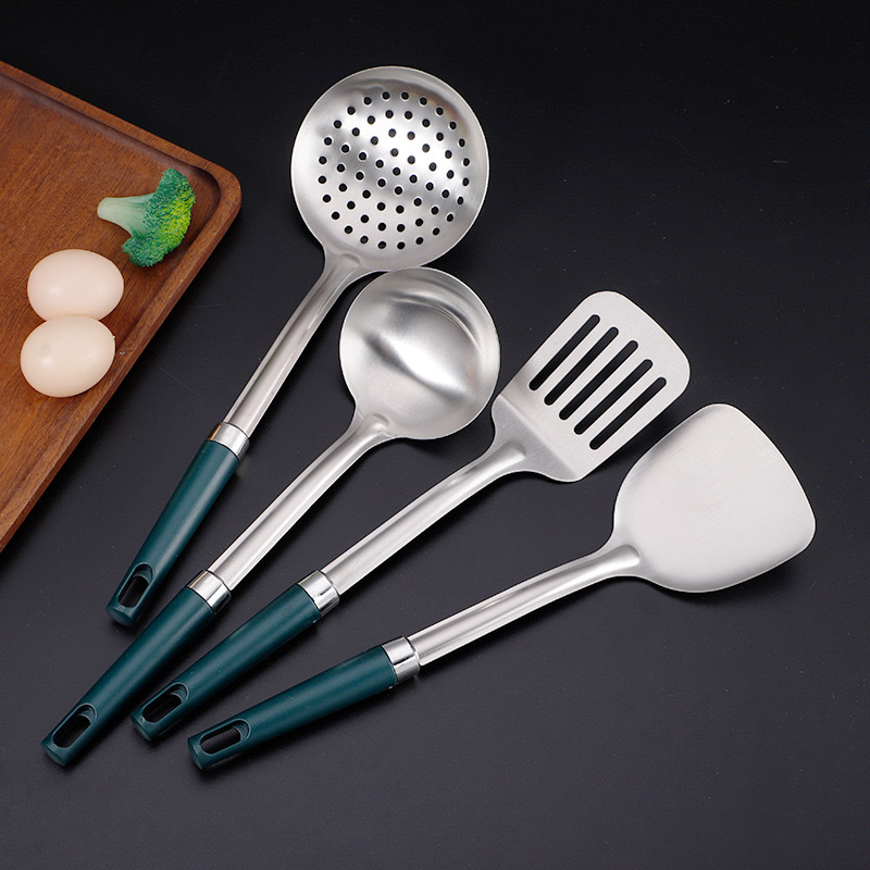 스테인레스 주걱 4종 세트, 화상 방지 손잡이, 가정용 주방 조리기구, 조리용 주걱, 프라이팬 주걱, 국자스토어 가기