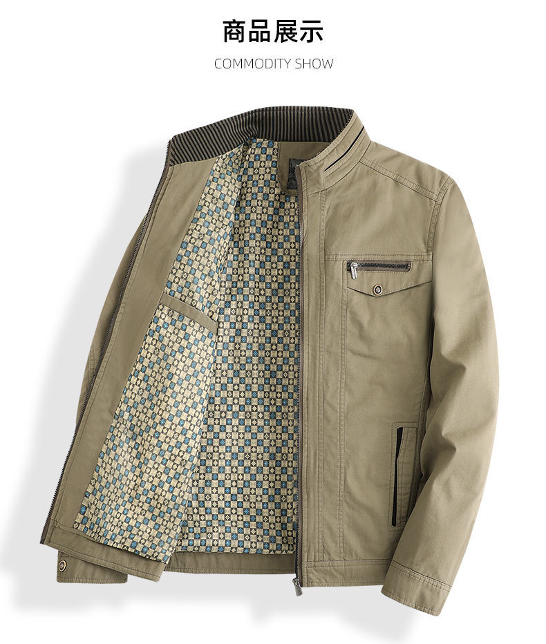봄과 가을 중년 남성 칼라 코튼 재킷 아빠의 가을 코트 중년 얇은 면 남성용 탑스토어 가기