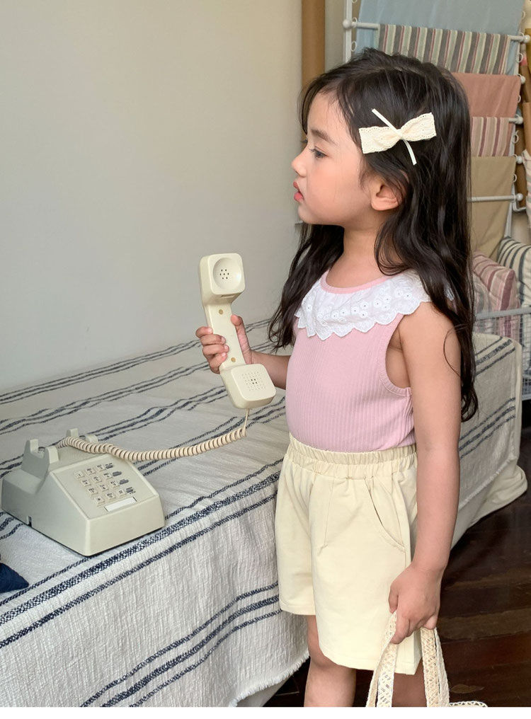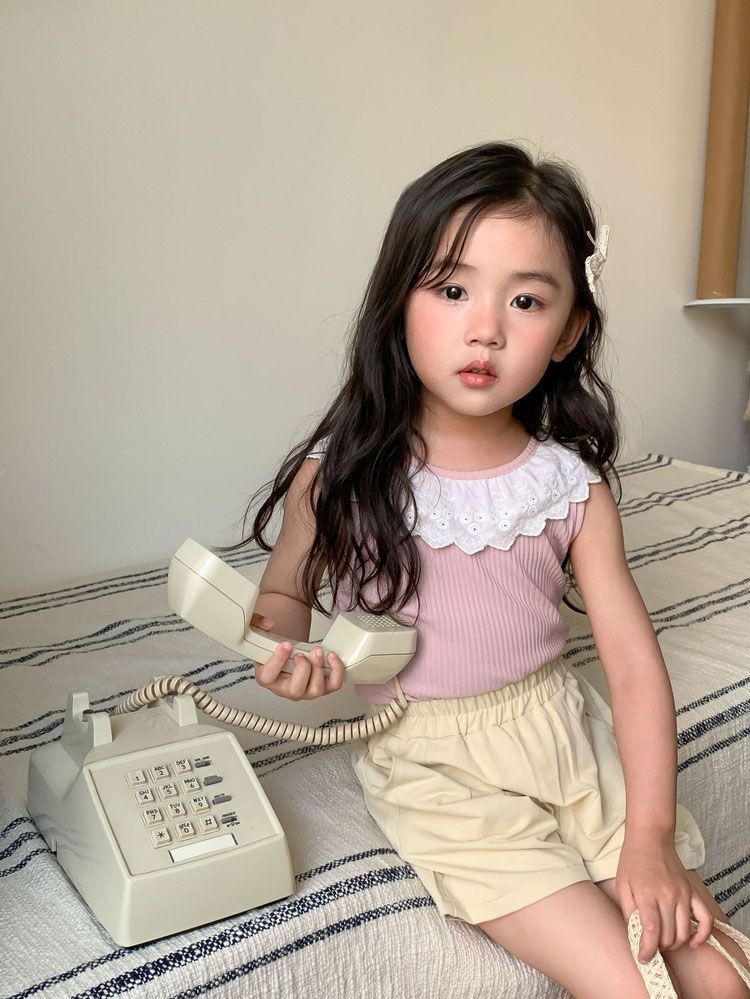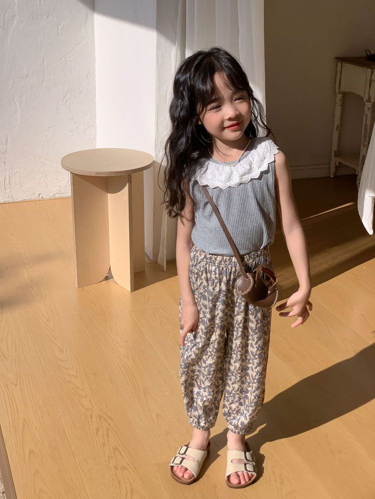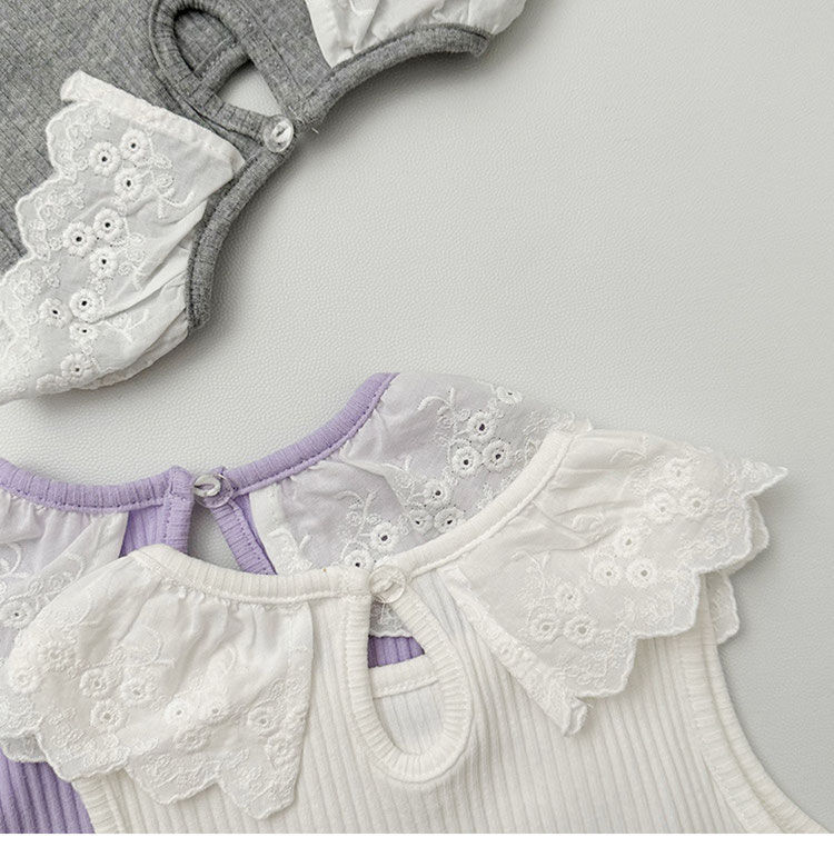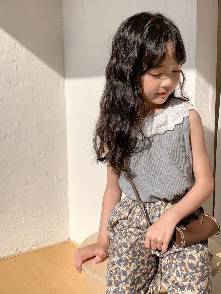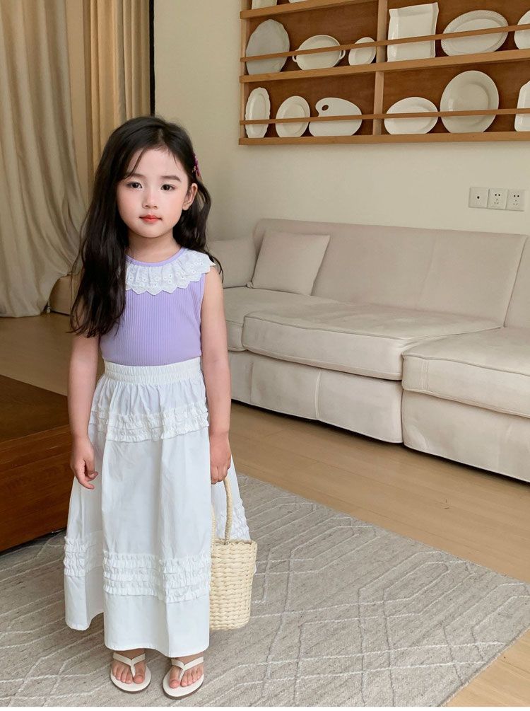 2024 년 새로운 여름 소녀 레이스 조끼 아기 소녀의 러플 솔리드 컬러 스타일리스트 모든 경기 캐주얼 트렌디 중소 규모 어린이스토어 가기
