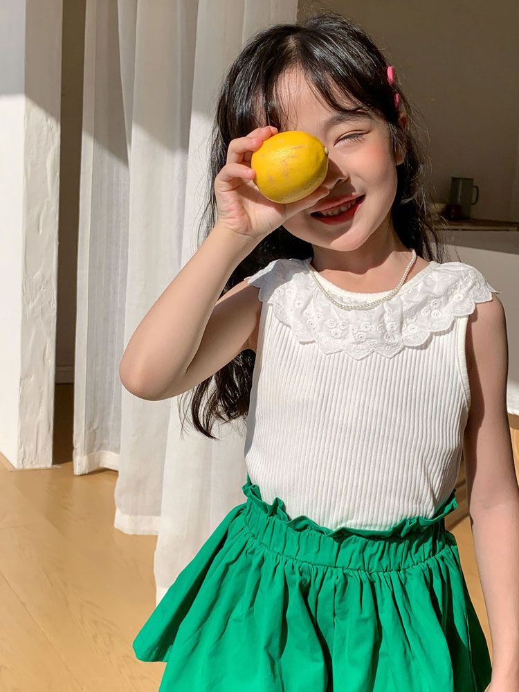 2024 년 새로운 여름 소녀 레이스 조끼 아기 소녀의 러플 솔리드 컬러 스타일리스트 모든 경기 캐주얼 트렌디 중소 규모 어린이