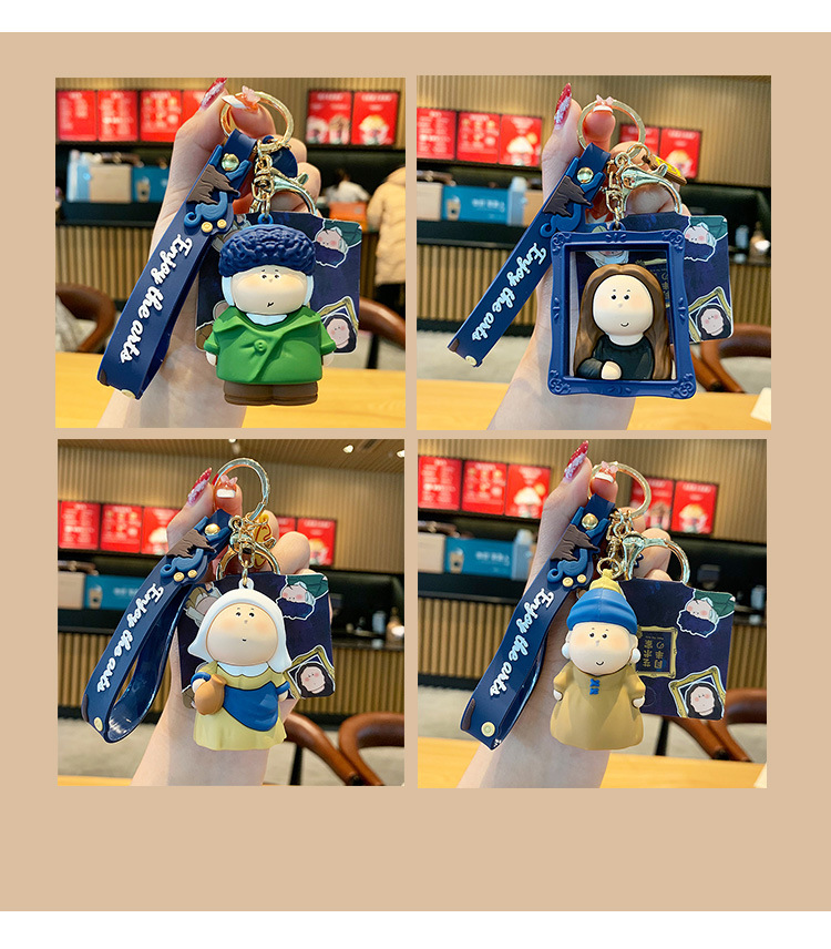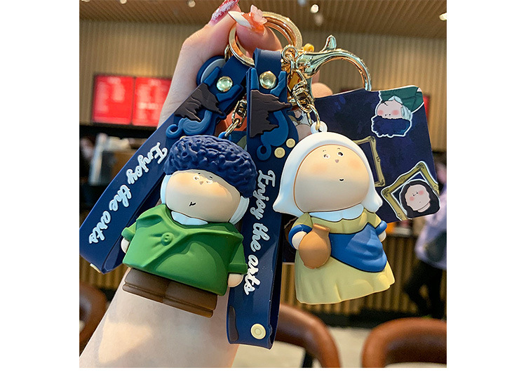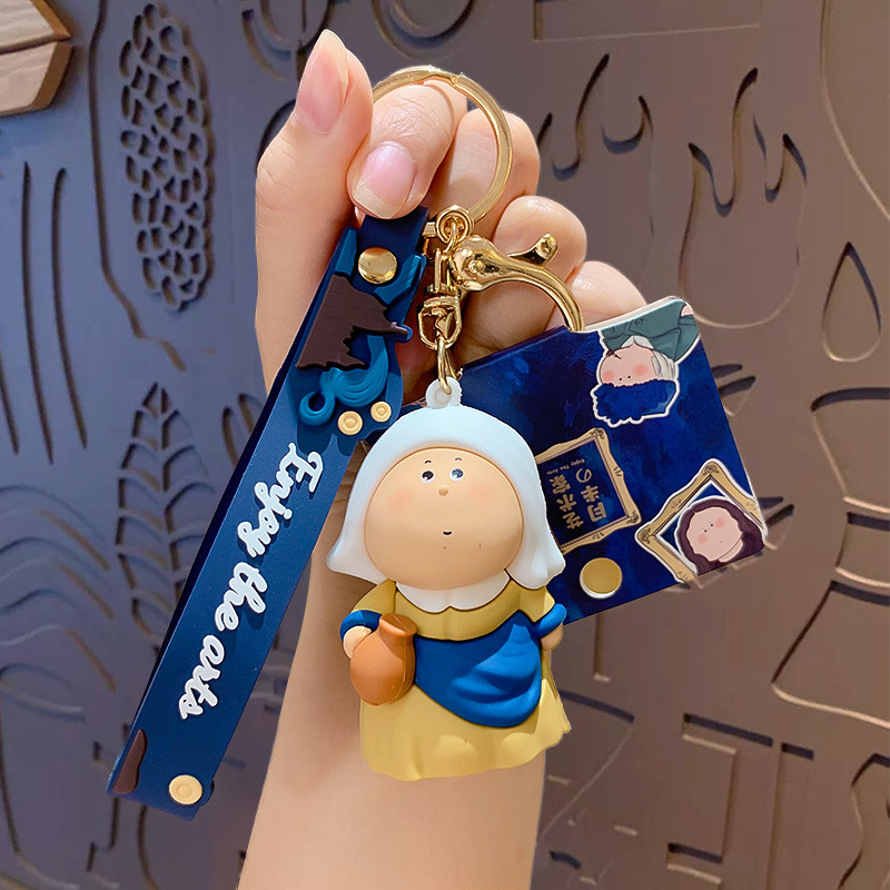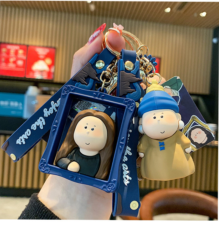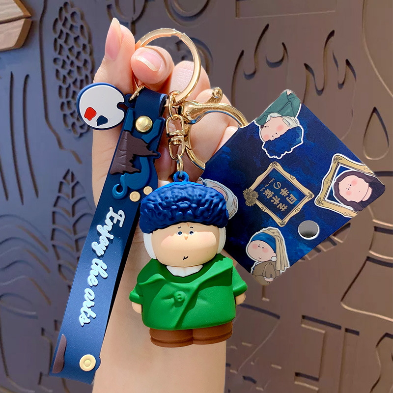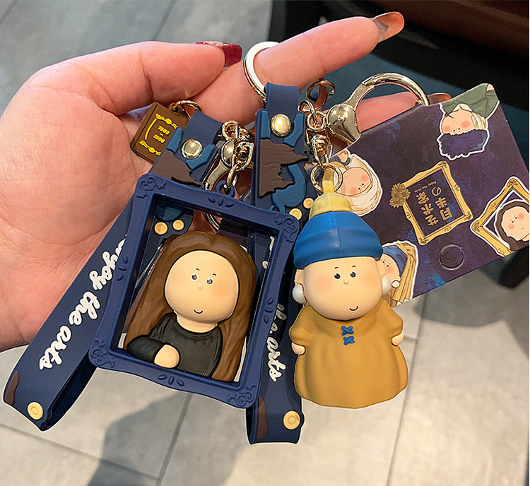 귀여운 만화 문 하프 아티스트 키 체인 펜던트 모나리자 자동차 가방 키 체인 학교 가방 매달려 장식품