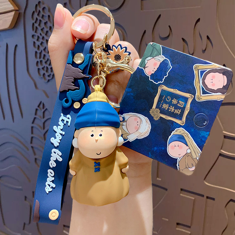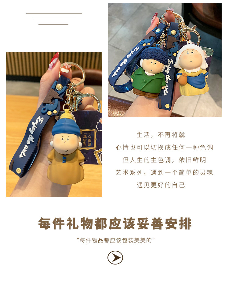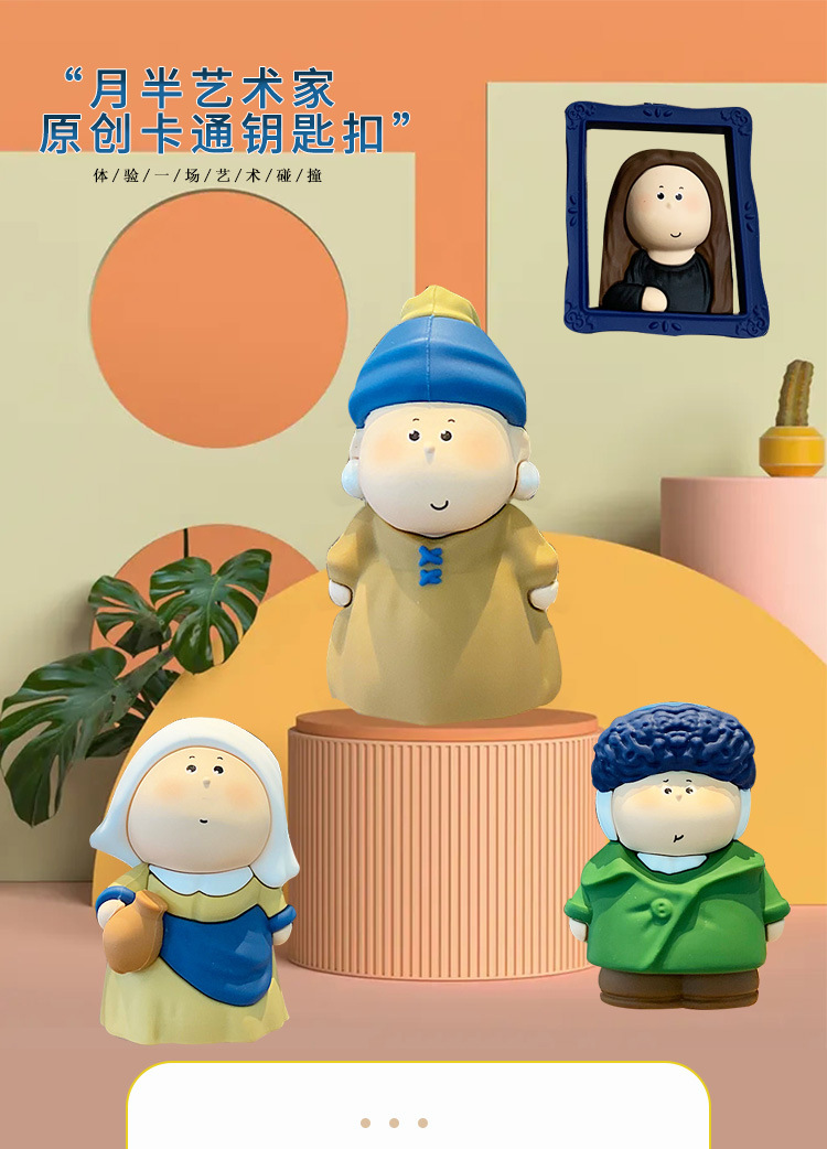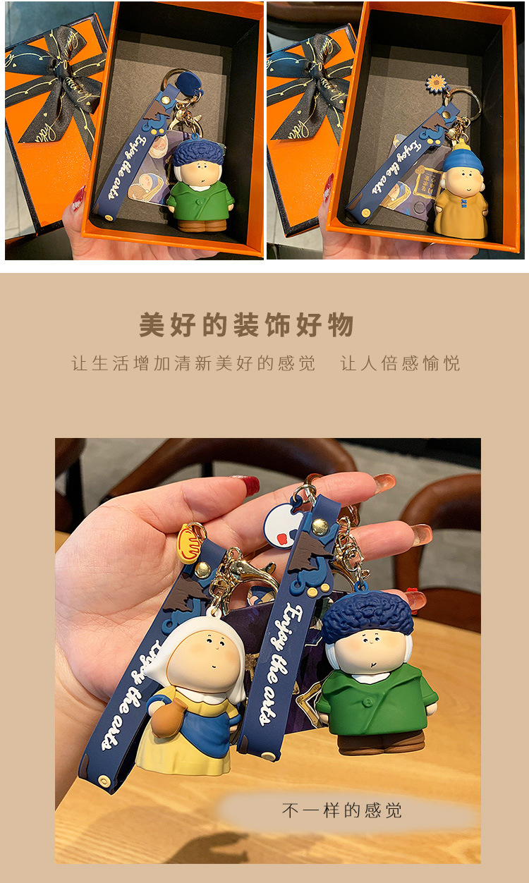 귀여운 만화 문 하프 아티스트 키 체인 펜던트 모나리자 자동차 가방 키 체인 학교 가방 매달려 장식품