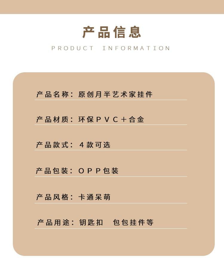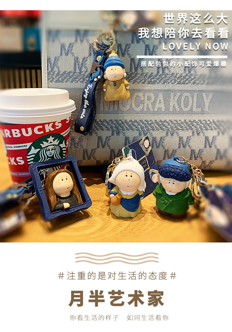 귀여운 만화 문 하프 아티스트 키 체인 펜던트 모나리자 자동차 가방 키 체인 학교 가방 매달려 장식품스토어 가기