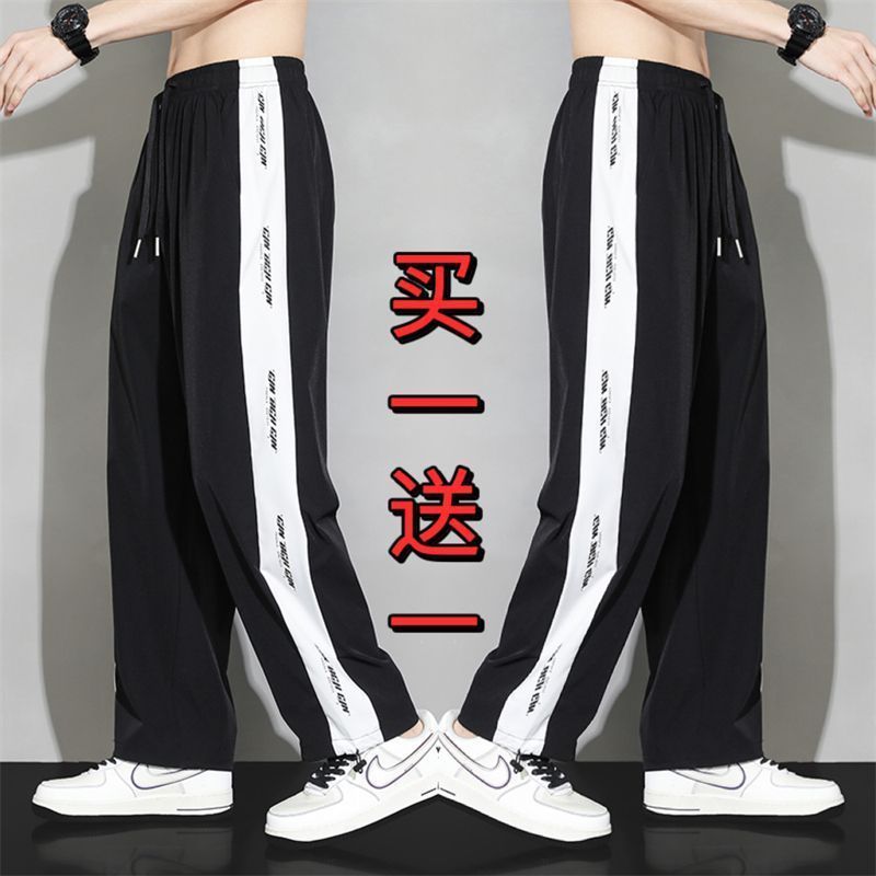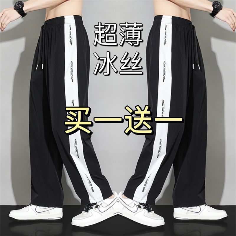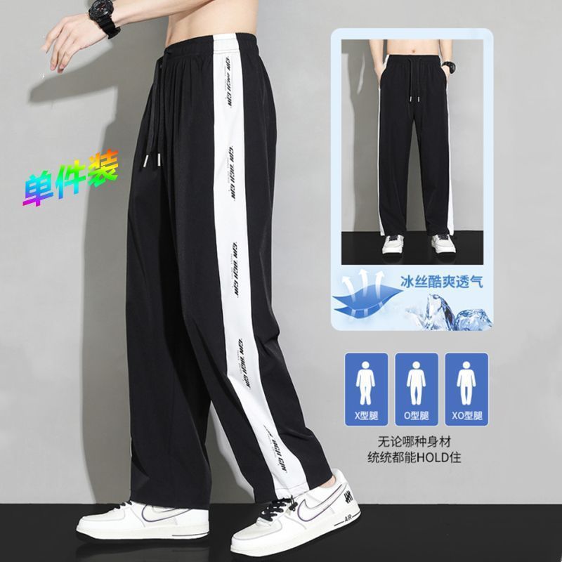 여름 얇은 아이스 실크 바지 남자 아메리칸 스타일 스트레이트 루즈 캐주얼 바지 유행 올 매치 슬림 룩 와이드 레그 스포츠 바지