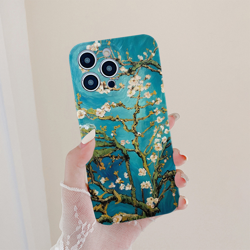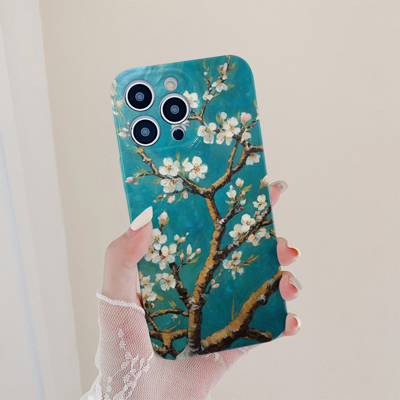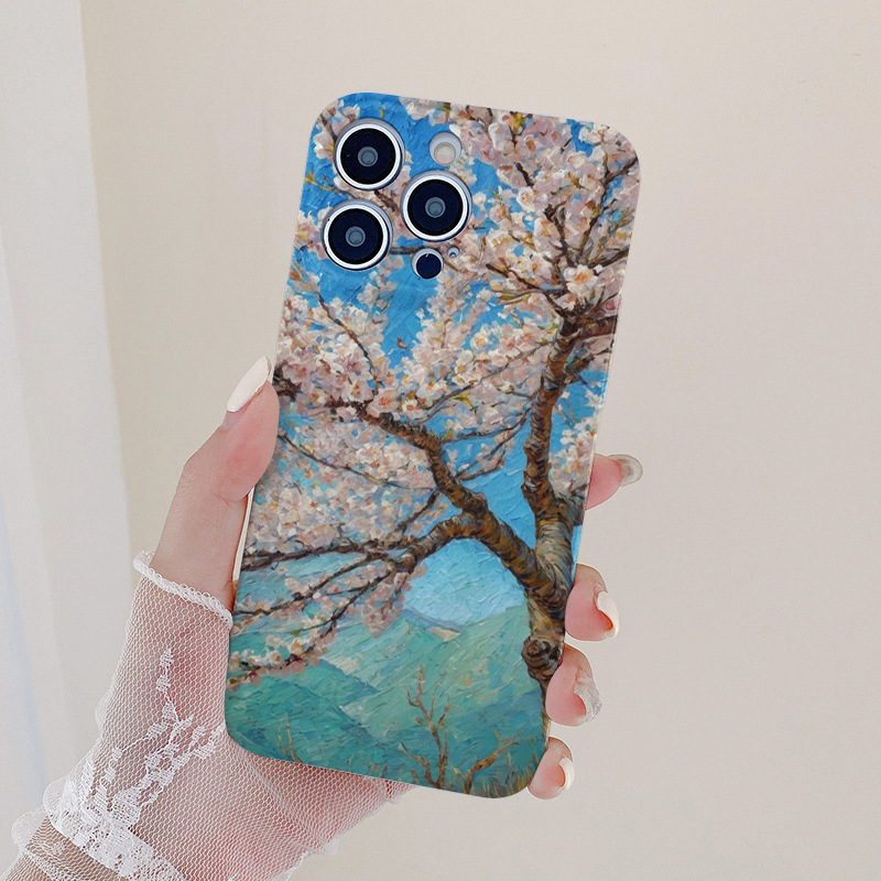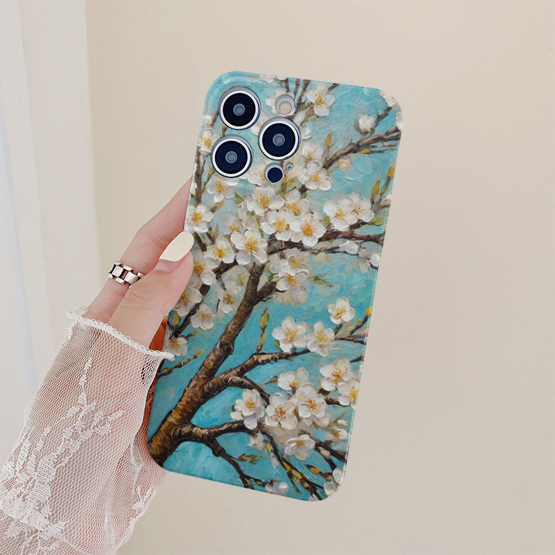 살구색 꽃 유화 필린 하드 쉘 폰 케이스 프리미엄 느낌 iphone15 All-inclusive 13 Apple 14 promax에 적합스토어 가기