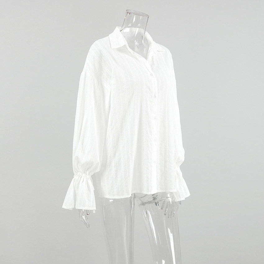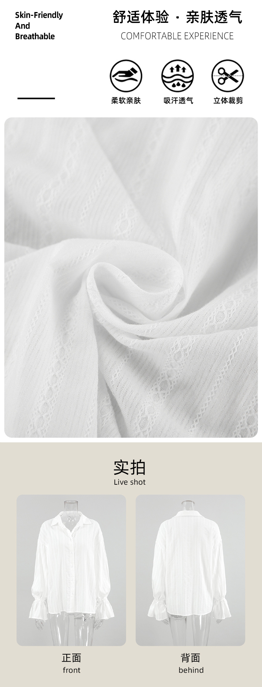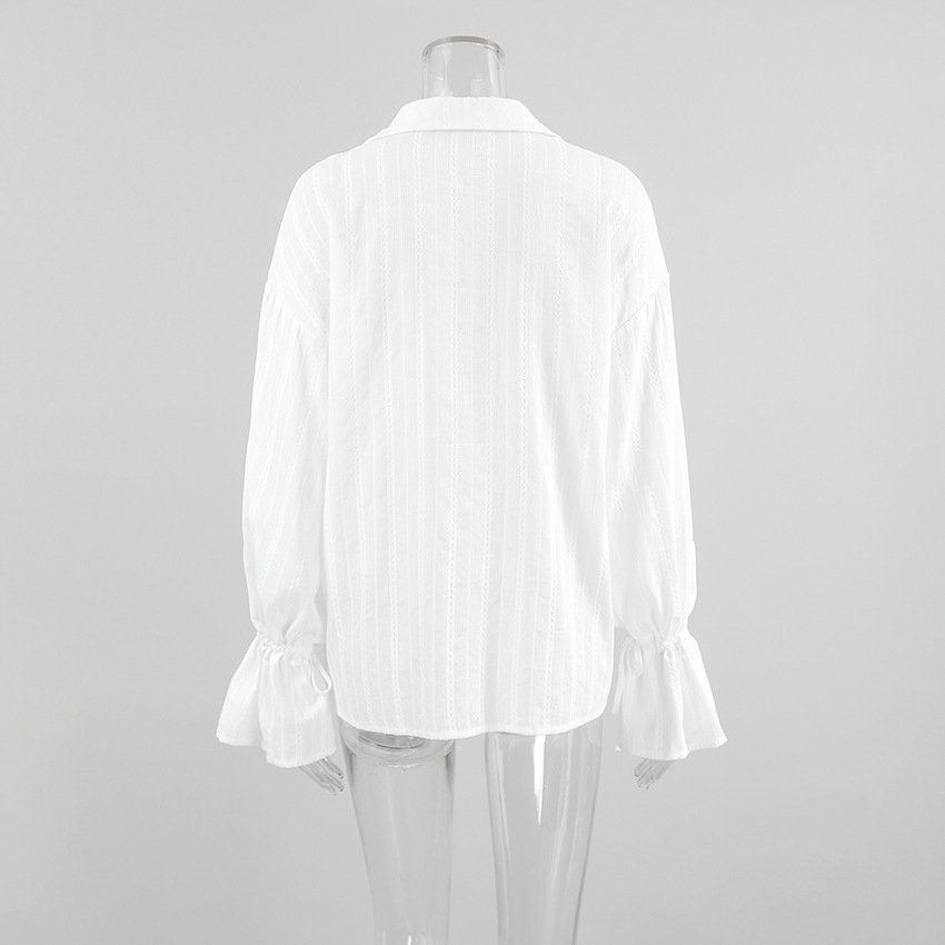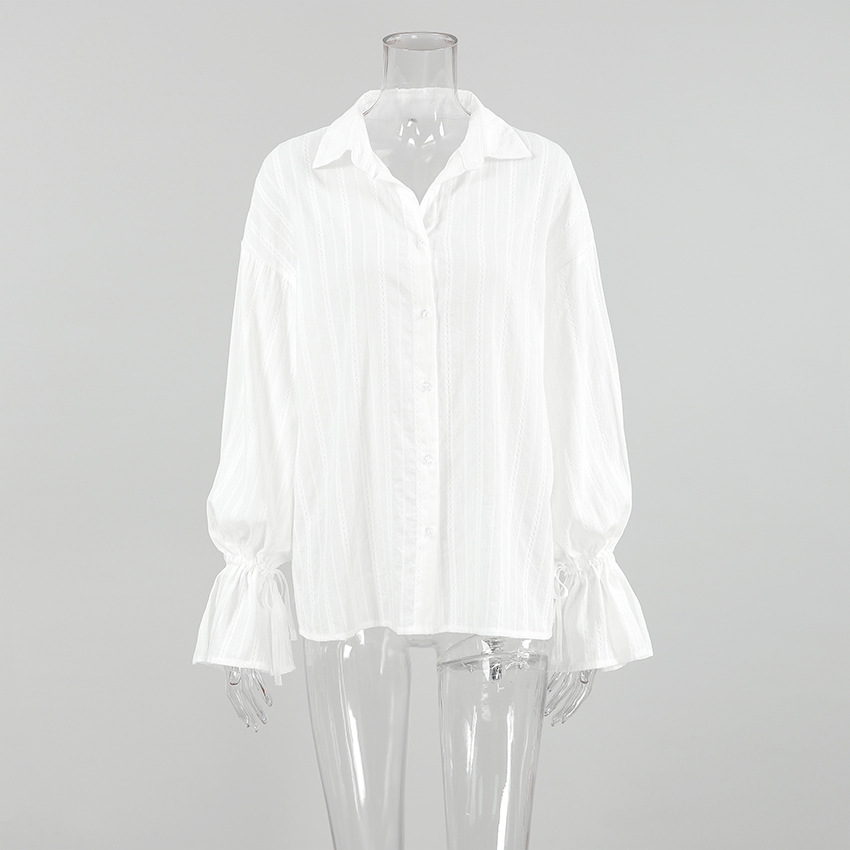 프렌치 자카드 코튼 라펠 셔츠 2025 가을 통근 루즈한 내부 벨 슬리브 화이트 셔츠 대외 무역 여성 의류스토어 가기