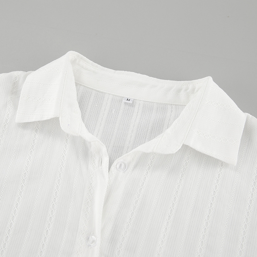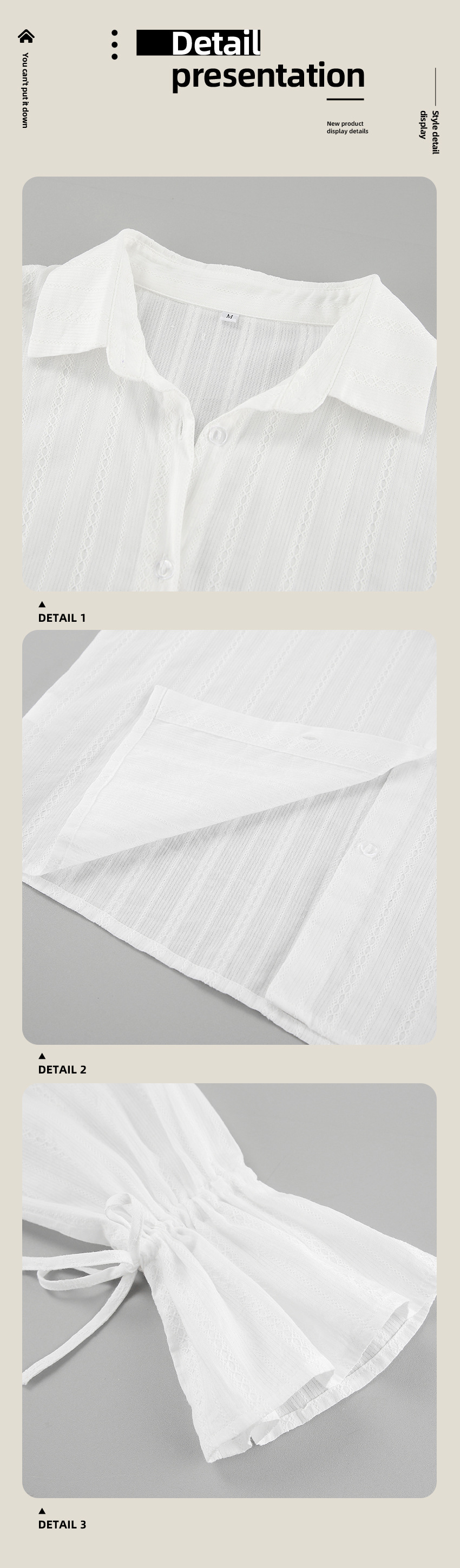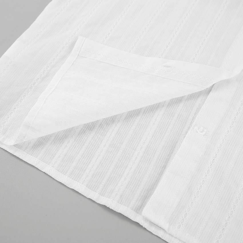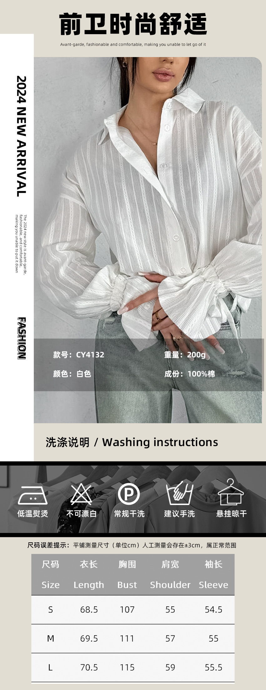 프렌치 자카드 코튼 라펠 셔츠 2025 가을 통근 루즈한 내부 벨 슬리브 화이트 셔츠 대외 무역 여성 의류스토어 가기