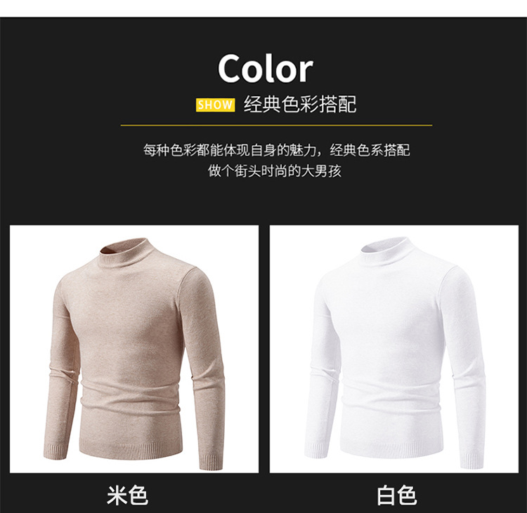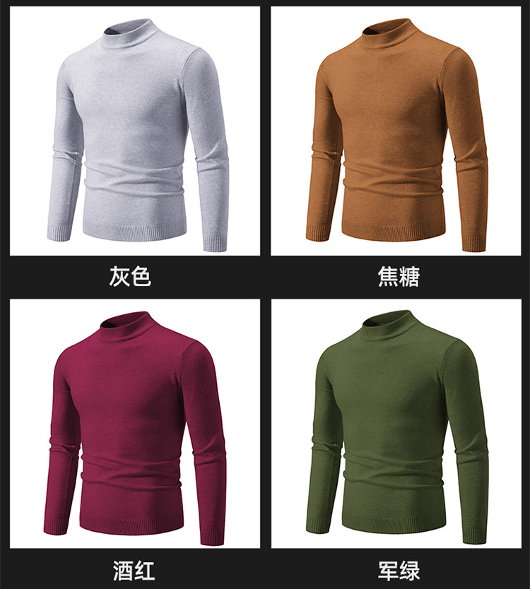 빈티지 심플 솔리드 컬러 하프 터틀넥 베이스 스웨터 남성용 내복 외부 캐주얼 남성용 얇은 슬림 핏 니트 스웨터스토어 가기