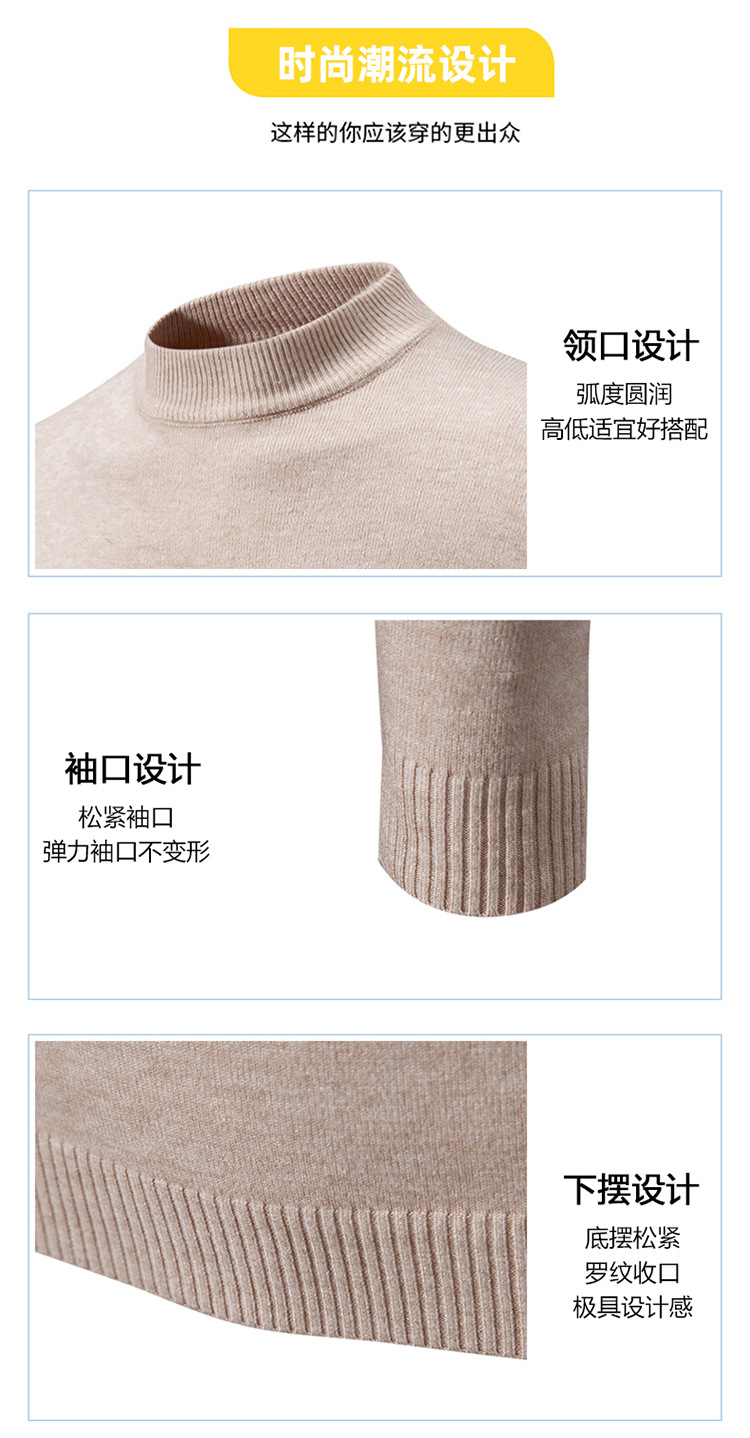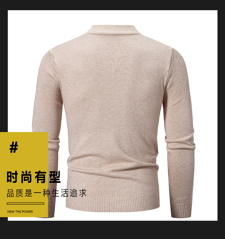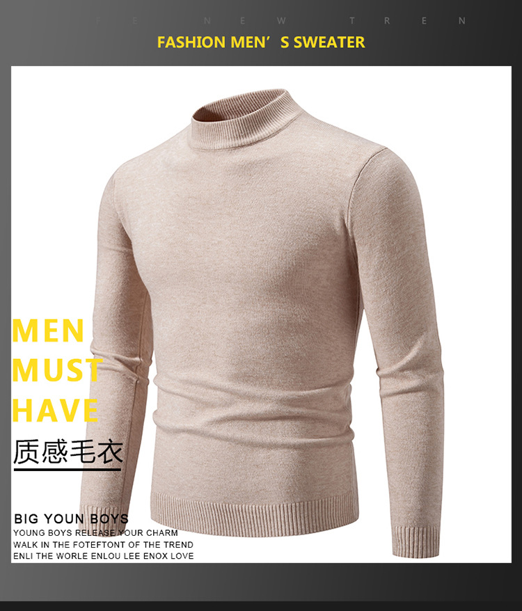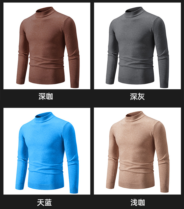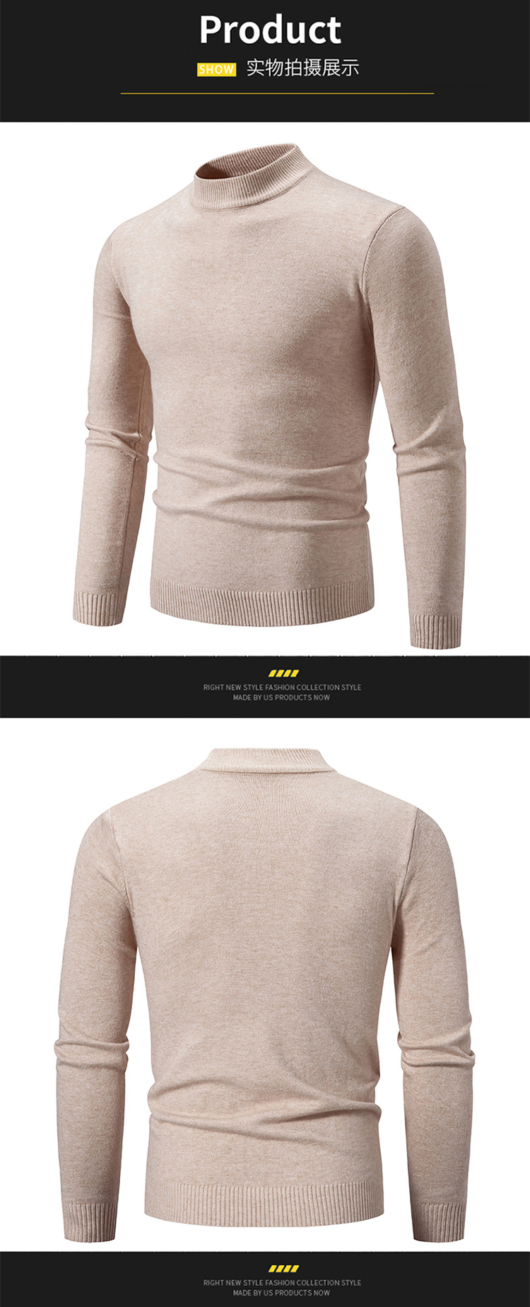 빈티지 심플 솔리드 컬러 하프 터틀넥 베이스 스웨터 남성용 내복 외부 캐주얼 남성용 얇은 슬림 핏 니트 스웨터