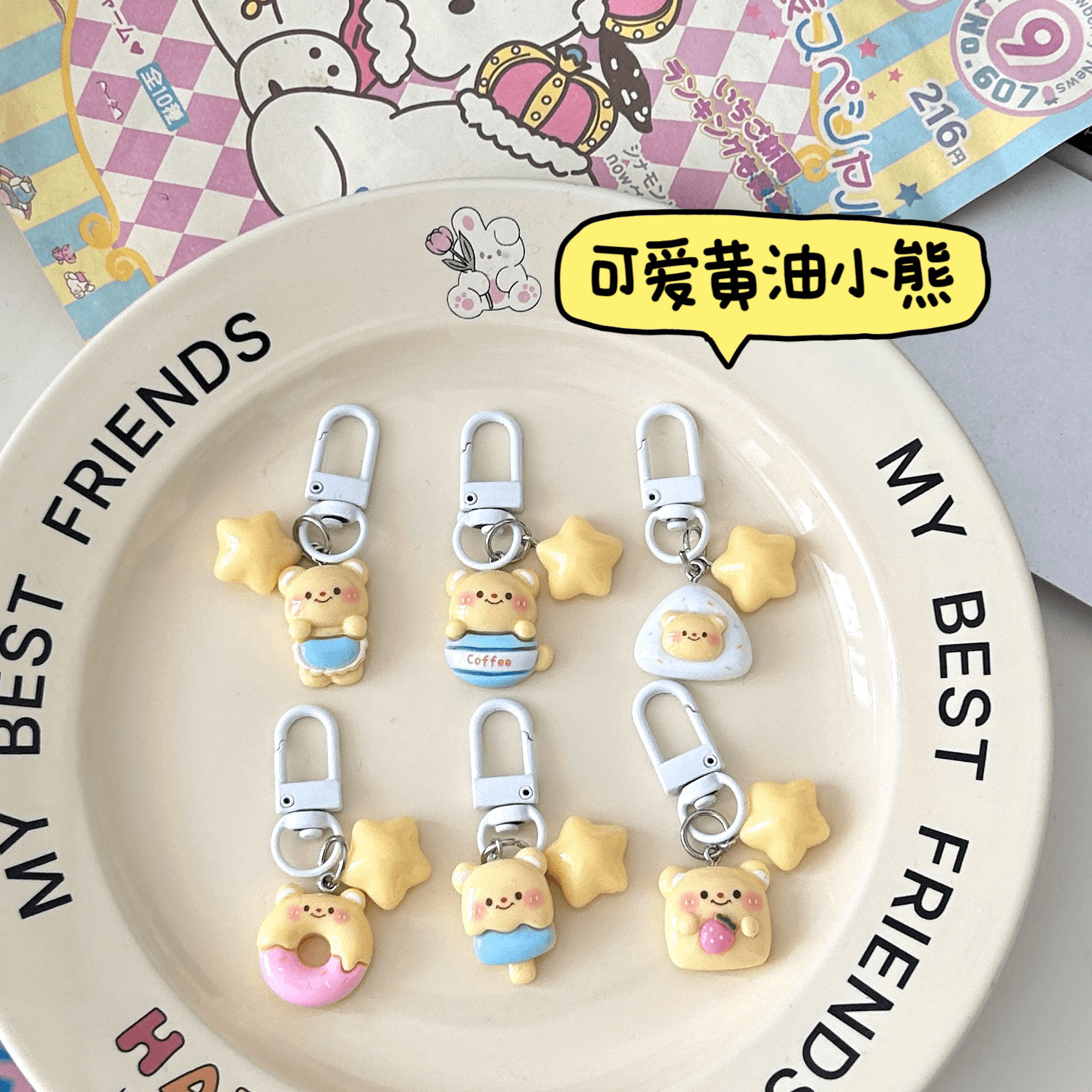 버터 곰 키 체인 귀여운 스타 우유 부드러운 귀여운 만화 펜던트 커플의 가장 친한 친구 Schoolbag 액세서리 선물