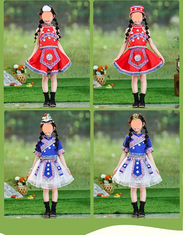 어린이 소수 민족 의상 소년 소녀 Miao Yao Yi Zhuang 댄스 의상 유치원 의상스토어 가기