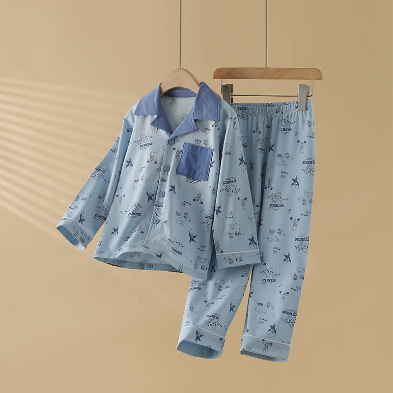 남학생 긴팔 가정옷 세트 중학생 봄 · 여름 방공복 가을 · 겨울 코튼 모자마스 중학생 옷깃 잠옷