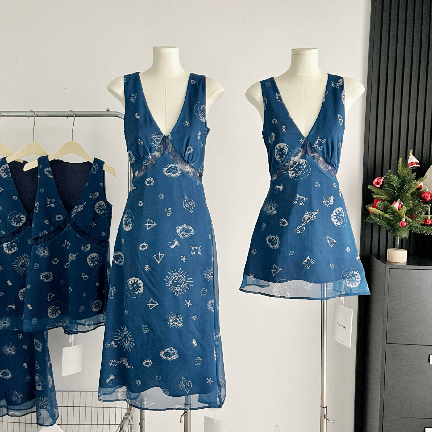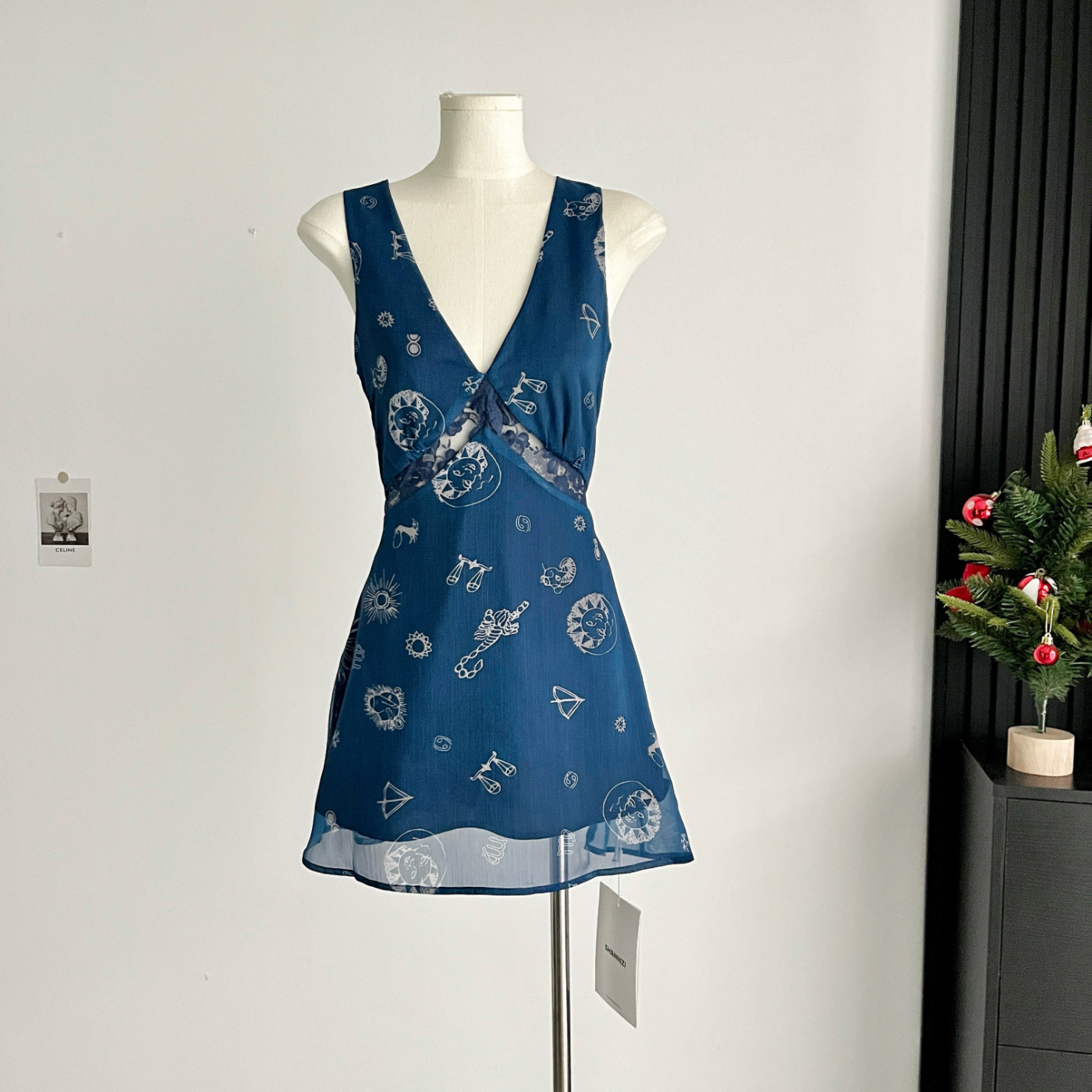 "Xinxing" 시칠리아, 여성 허리 슬림 A 자 모양의 긴 원피스 원피스 레트로 V-Neck 조끼스토어 가기