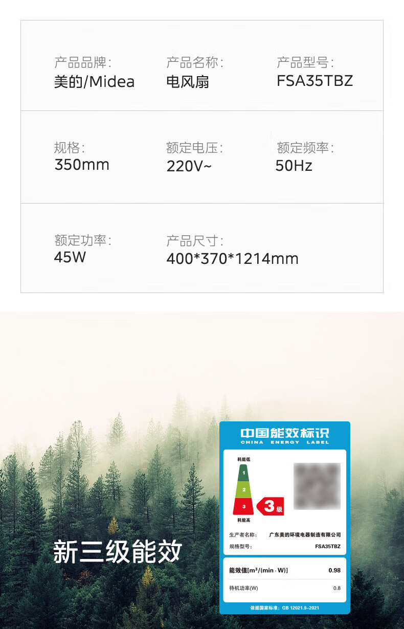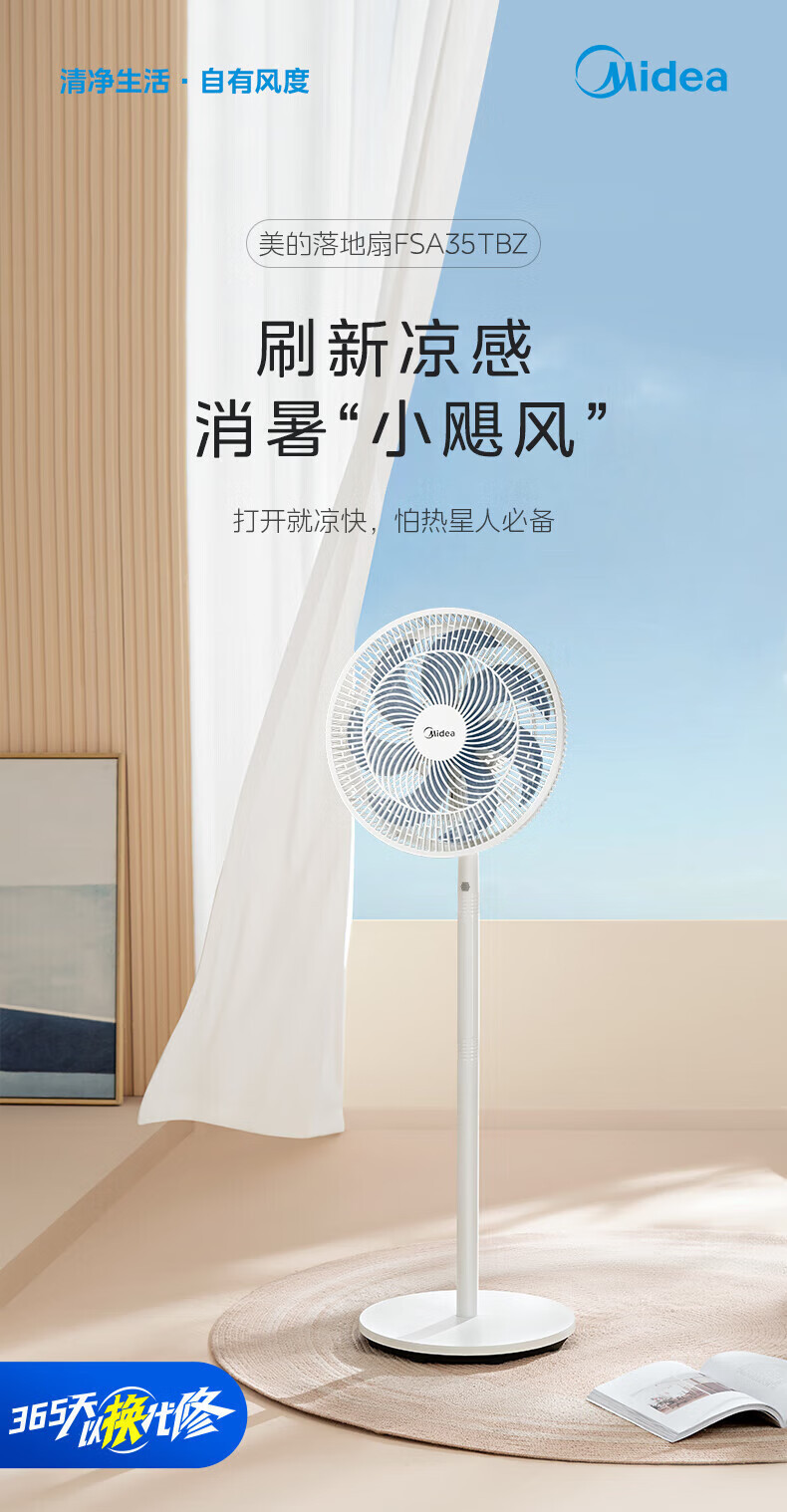 Midea FSA35TBZ 팬 7 잎 원격 제어 타이밍 대형 바람 바닥 팬 라이트 톤 데스크탑 수직스토어 가기
