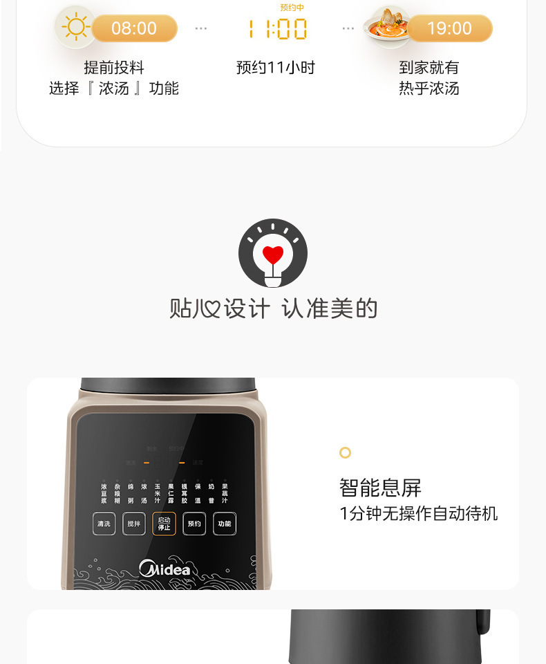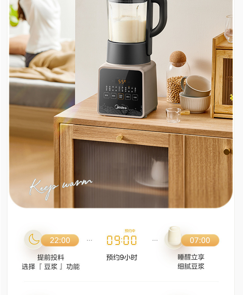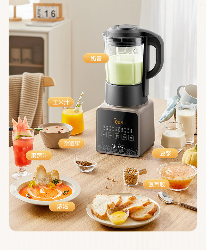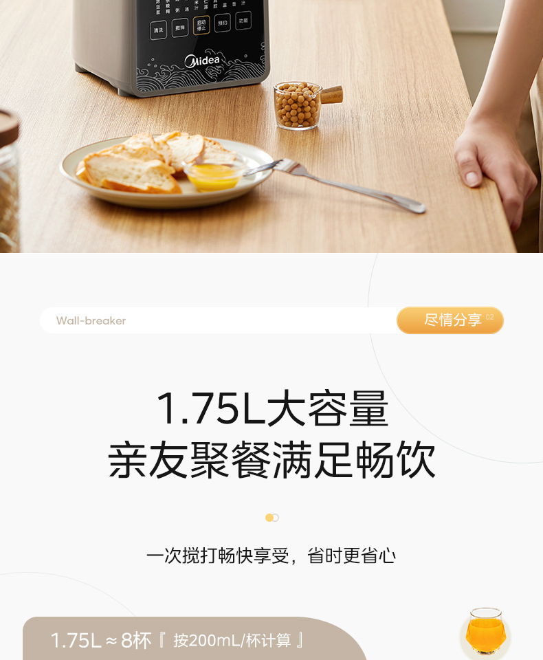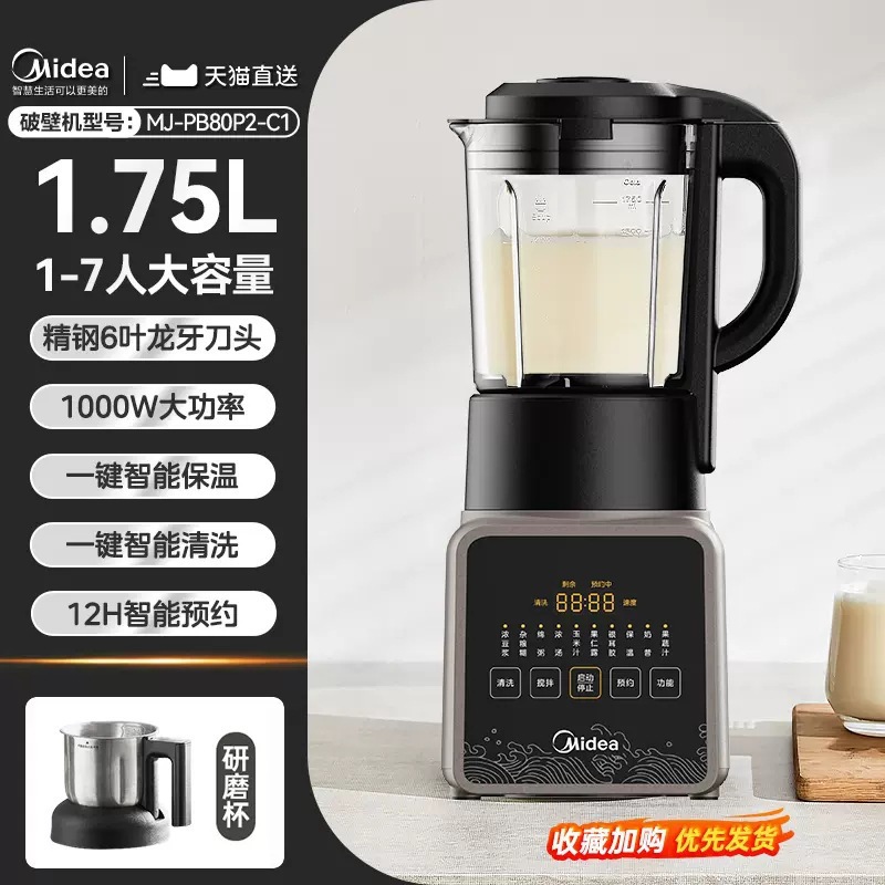 Midea 벽 속보 기계 가정용 콩 우유 기계 워시프리 라이트 톤 보조 식품 요리 분말 통합 다기능 MJ-PB80P2-C1스토어 가기