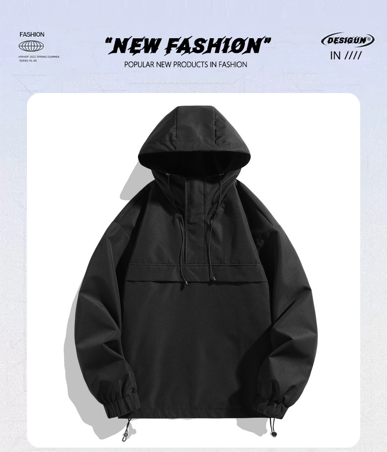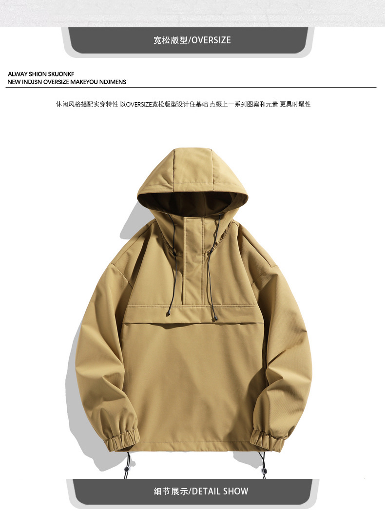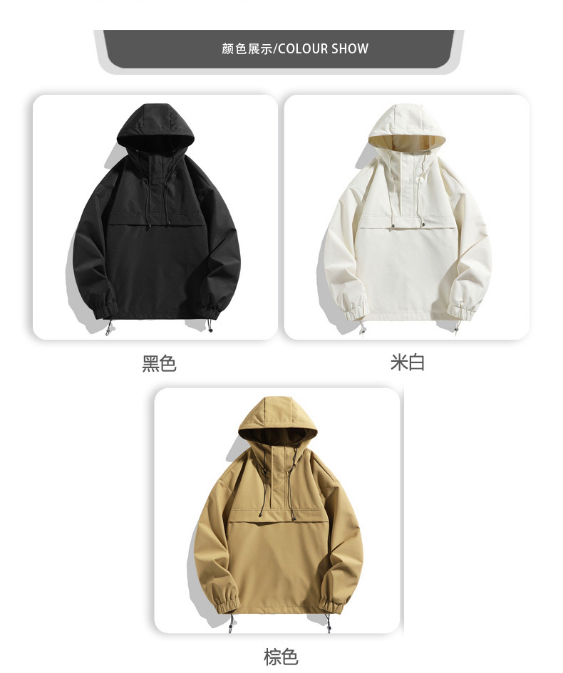 2025 새로운 후드 자켓 남자 기능성 바람 작업복 야외 후드 풀오버 하프 오픈 칼라 자켓스토어 가기