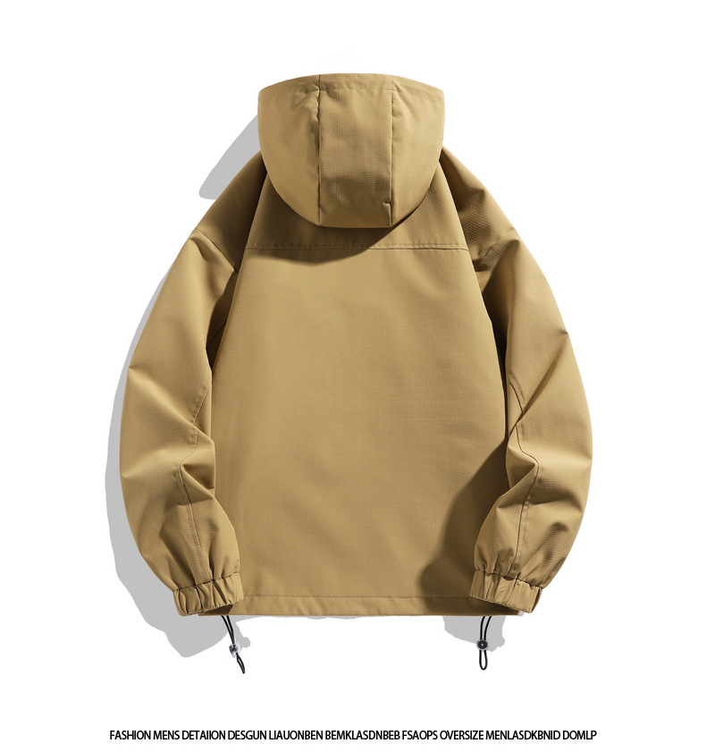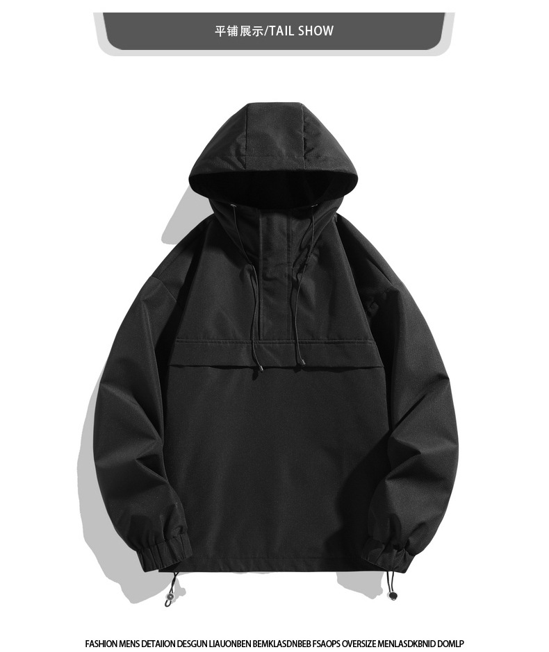 2025 새로운 후드 자켓 남자 기능성 바람 작업복 야외 후드 풀오버 하프 오픈 칼라 자켓