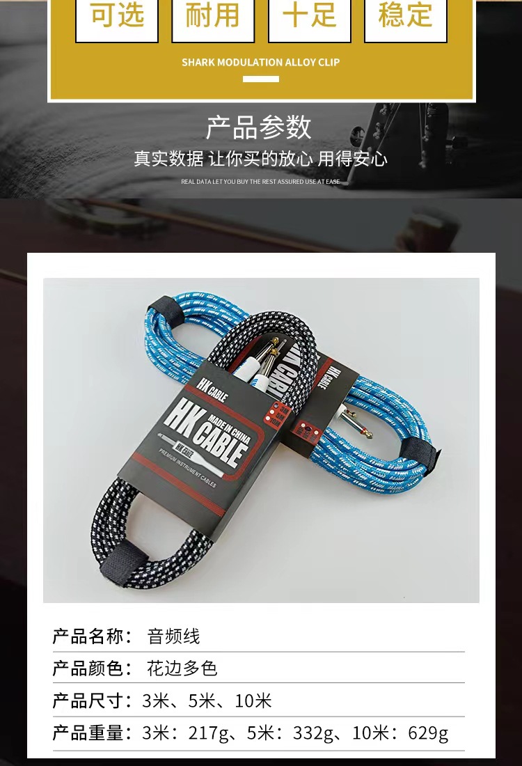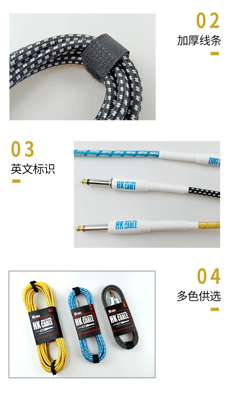 HK 직조 연결선 소음 감소 오디오 케이블 포크 기타 일렉트릭 기타 베이스 연결선 악기 연결선 기타스토어 가기