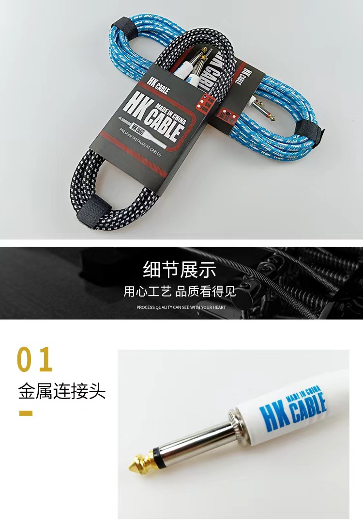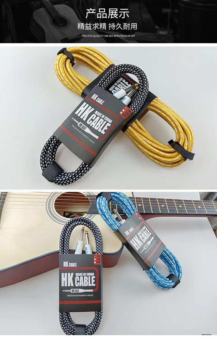 HK 직조 연결선 소음 감소 오디오 케이블 포크 기타 일렉트릭 기타 베이스 연결선 악기 연결선 기타