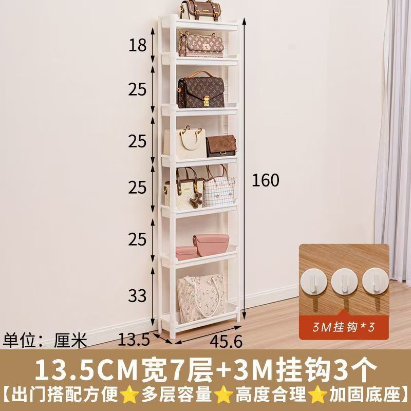 • 13.5cm 폭 7 층 프레임, 3 개의 고정 된 벽 후크를 보내는 바퀴 없음 (1 짧은, 4 길이 및 1 길이)
