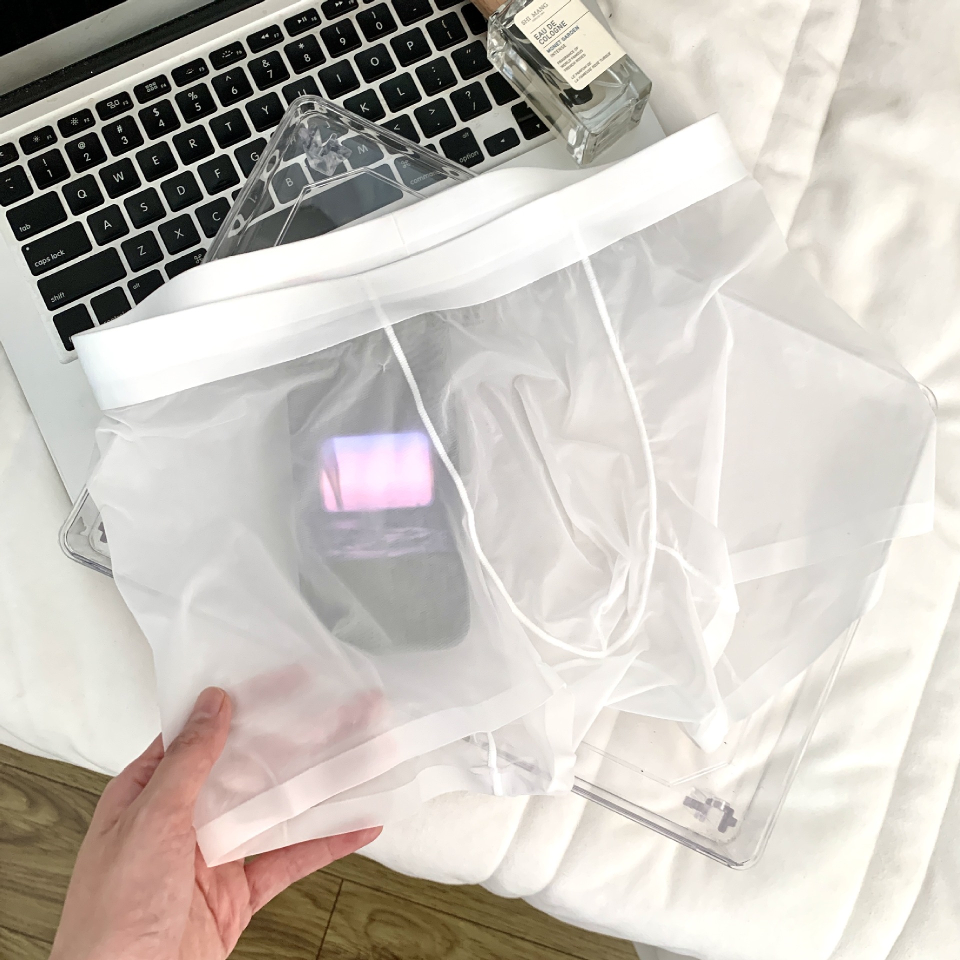 20D 아이스 실크 벌거 벗은 감각 추적없는 울트라 얇은 투명 남성 속옷 복서 쿨 센스 진공 가방 중간 허리 복서 바지스토어 가기
