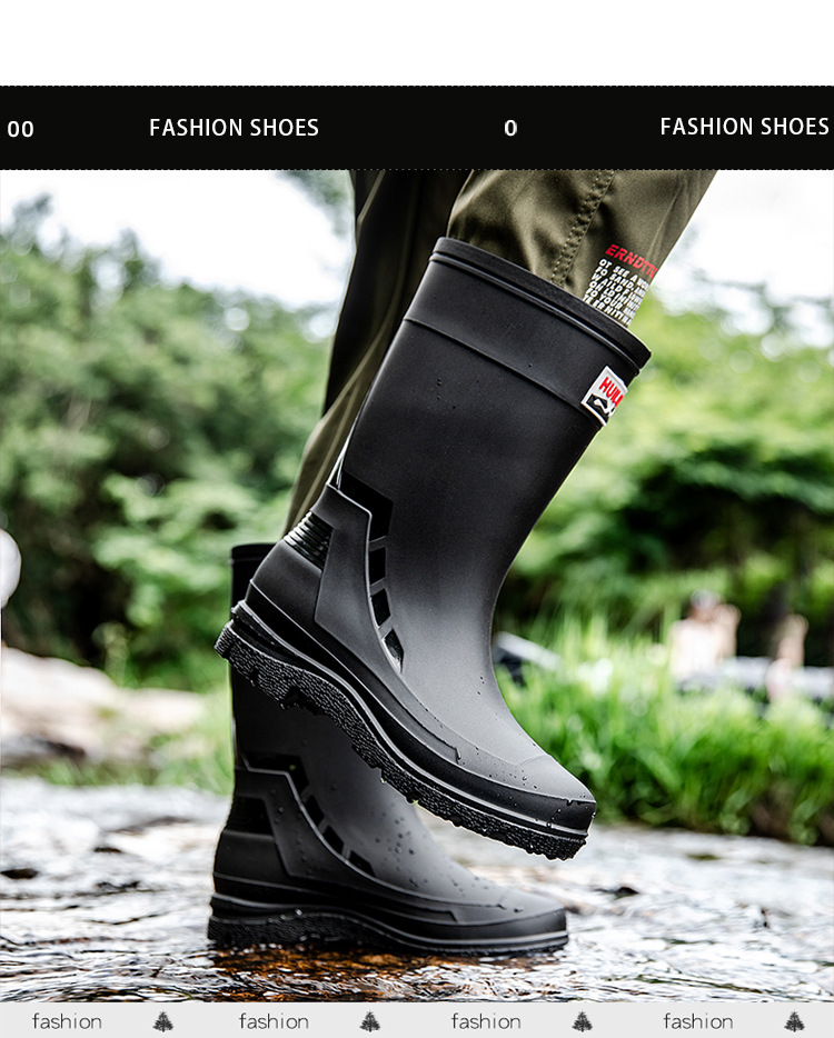 높은 비 부츠 남성용 중간 배럴 미끄럼 방지 워터 슈즈 패션 야외 장화 낚시 두꺼운 바닥 워터 부츠 따뜻한 고무 신발