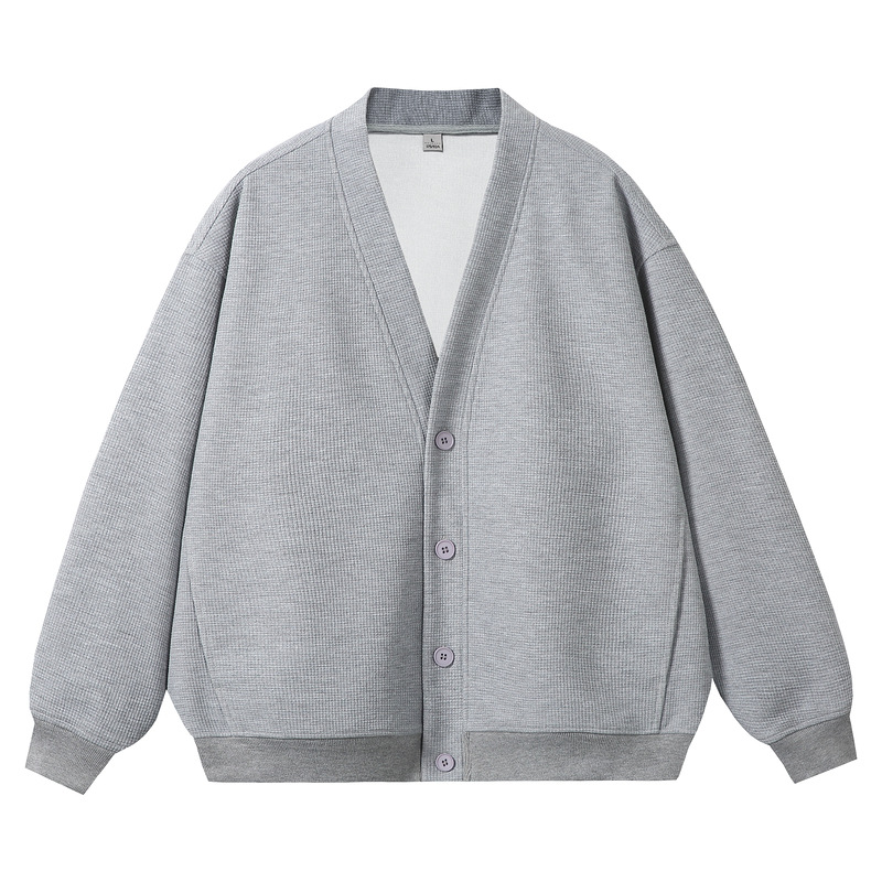 Qilin 남성용 일본 스타일 레트로 솔리드 컬러 와플 스웨터 카디건 재킷 헤비 400GV 칼라 롱 슬리브 탑 트렌디스토어 가기